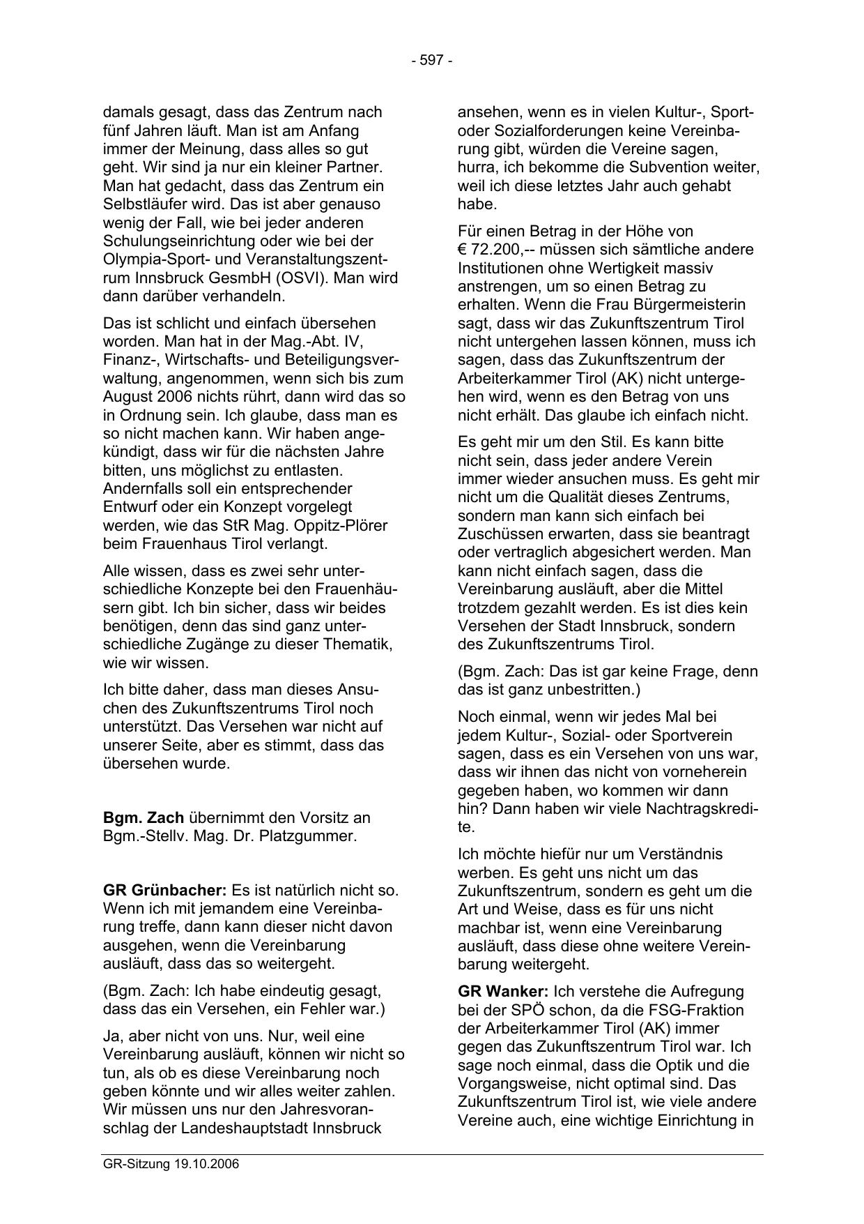(Bgm. Zach: Ich habe eindeutig gesagt,