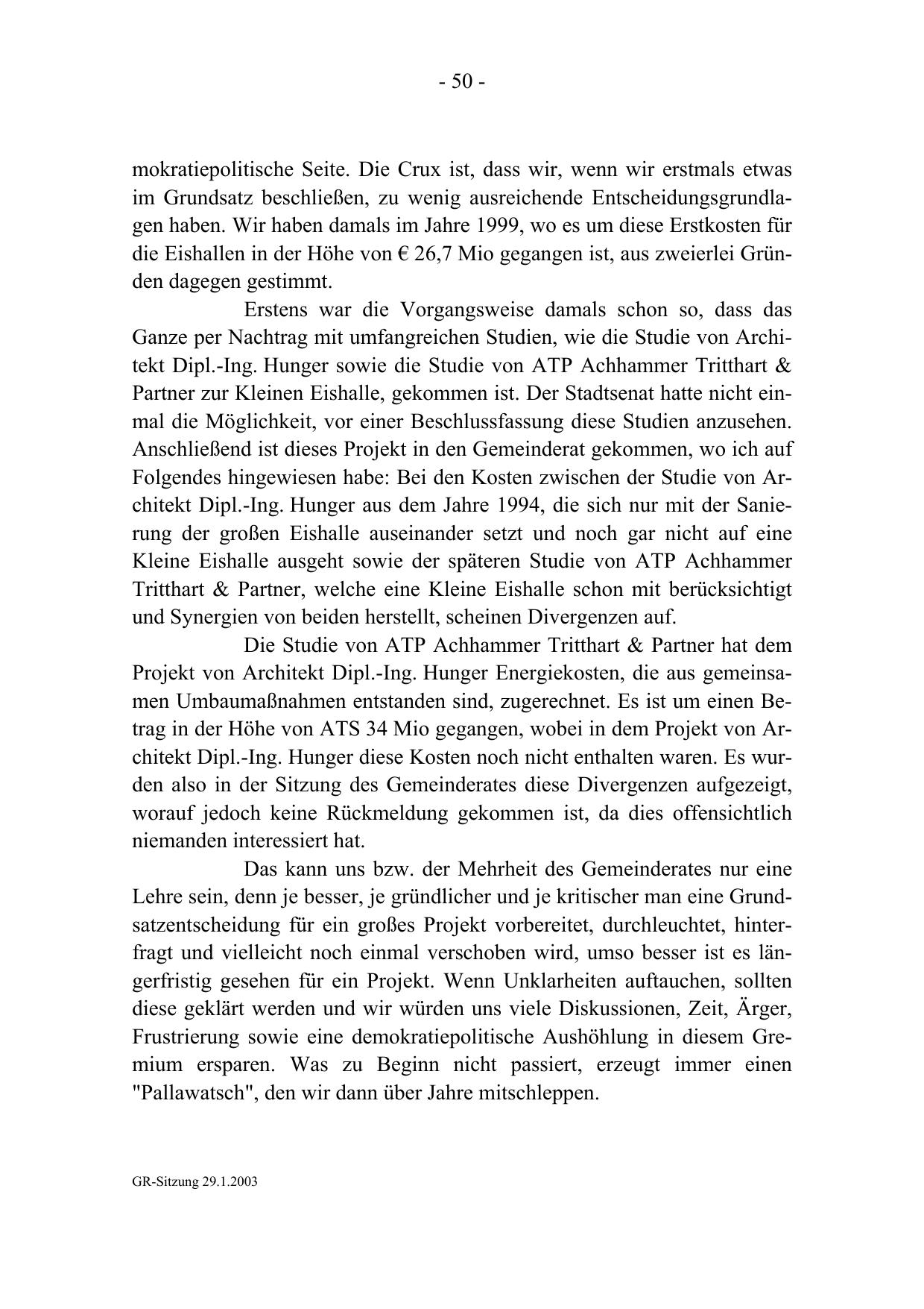 Partner zur Kleinen Eishalle, gekommen ist. Der Stadtsenat hatte nicht einmal die Möglichkeit, vor einer Beschlussfassung diese Studien anzusehen.