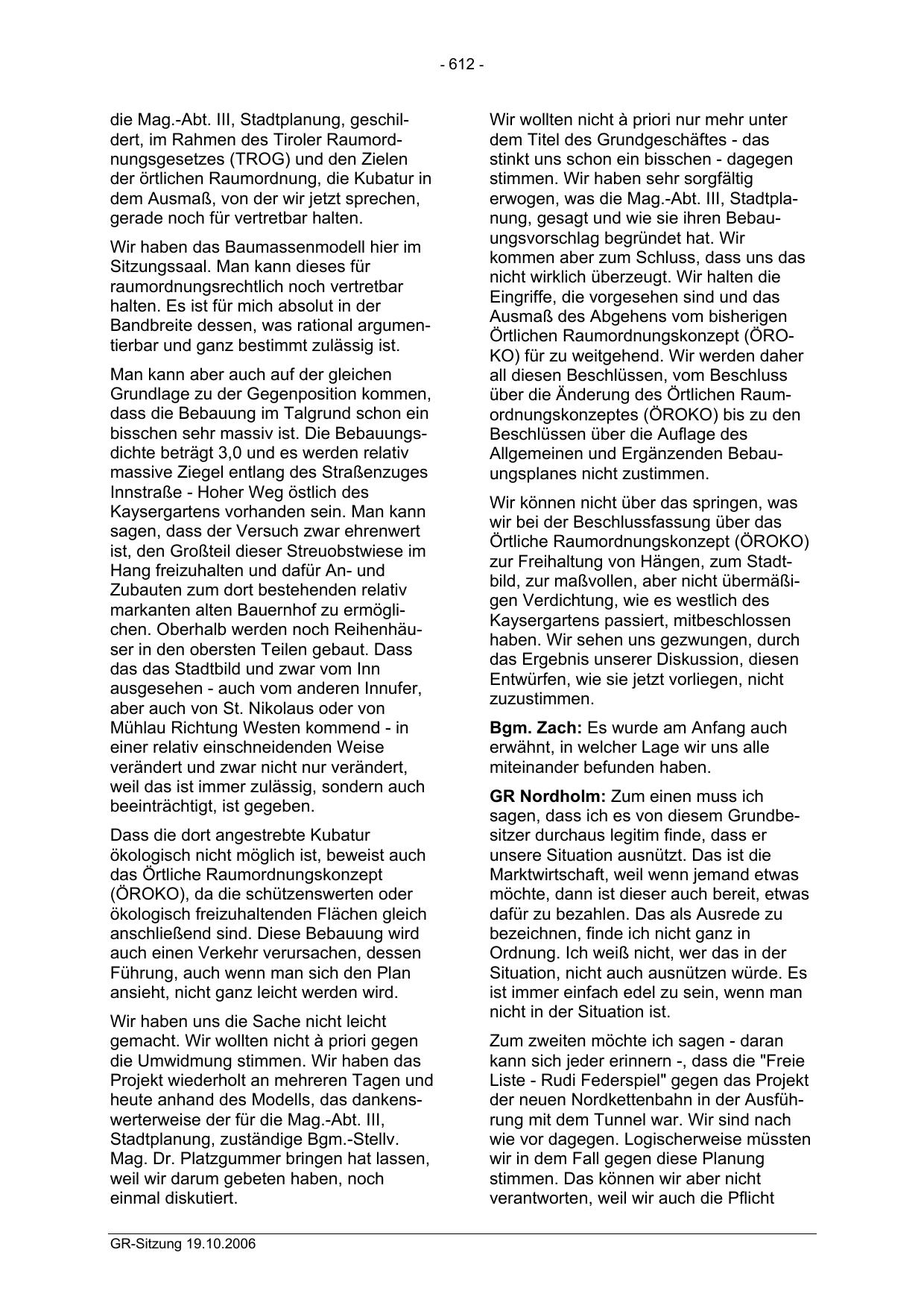 die Mag.-Abt. III, Stadtplanung, geschildert, im Rahmen des Tiroler Raumordnungsgesetzes (TROG) und den Zielen