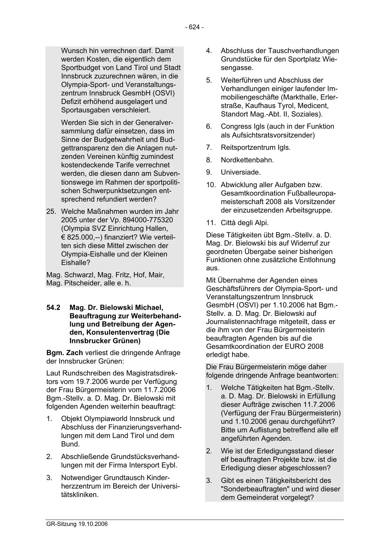 GesmbH (OSVI) per 1.10.2006 hat Bgm.Stellv. a. D. Mag. Dr. Bielowski auf
