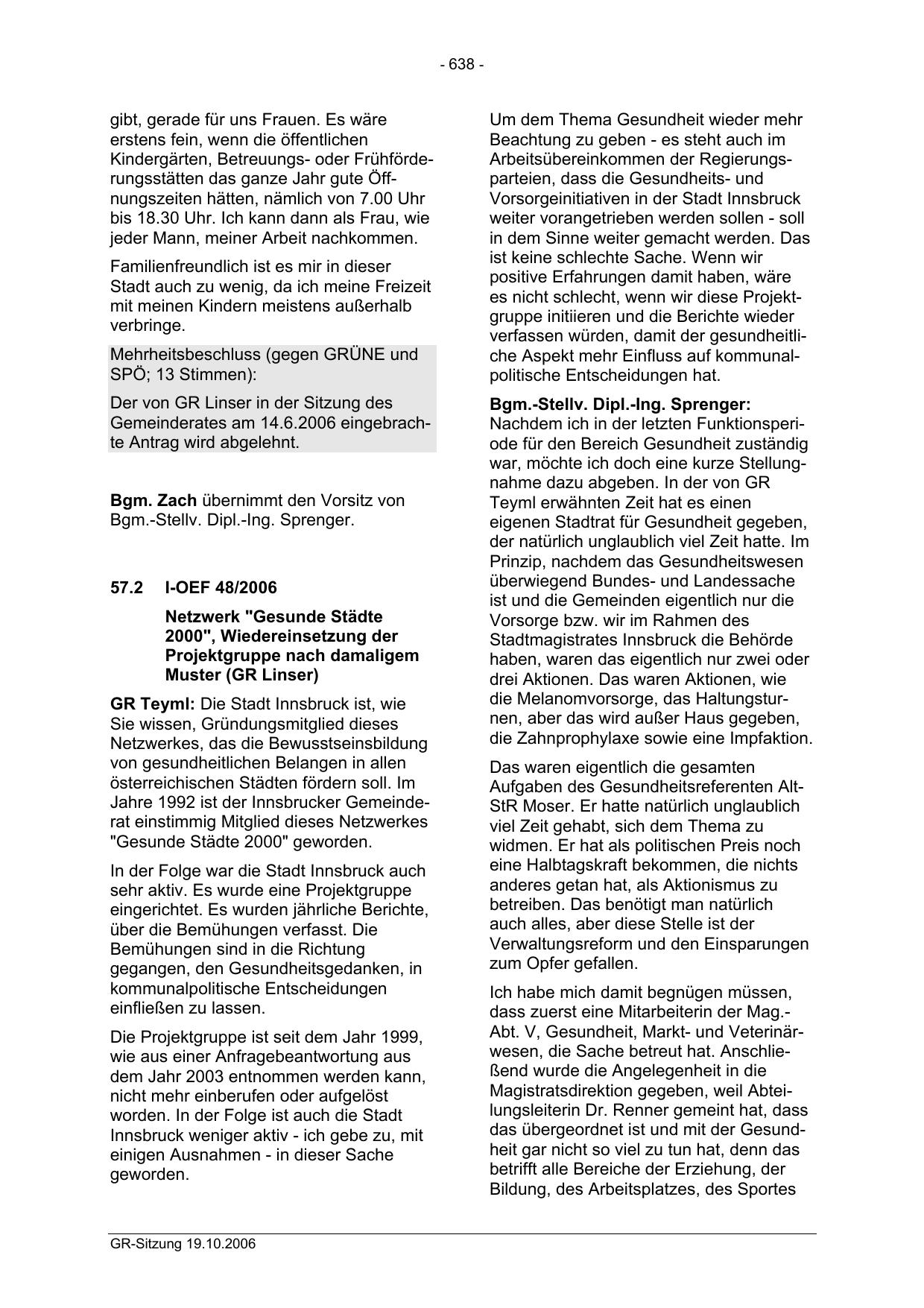 Jahre 1992 ist der Innsbrucker Gemeinderat einstimmig Mitglied dieses Netzwerkes