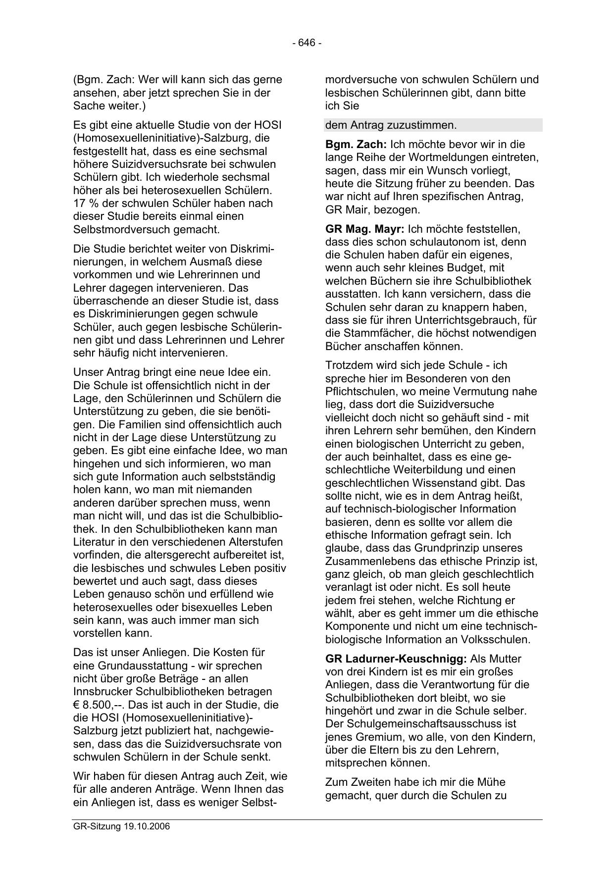 ein Anliegen ist, dass es weniger SelbstGR-Sitzung 19.10.2006