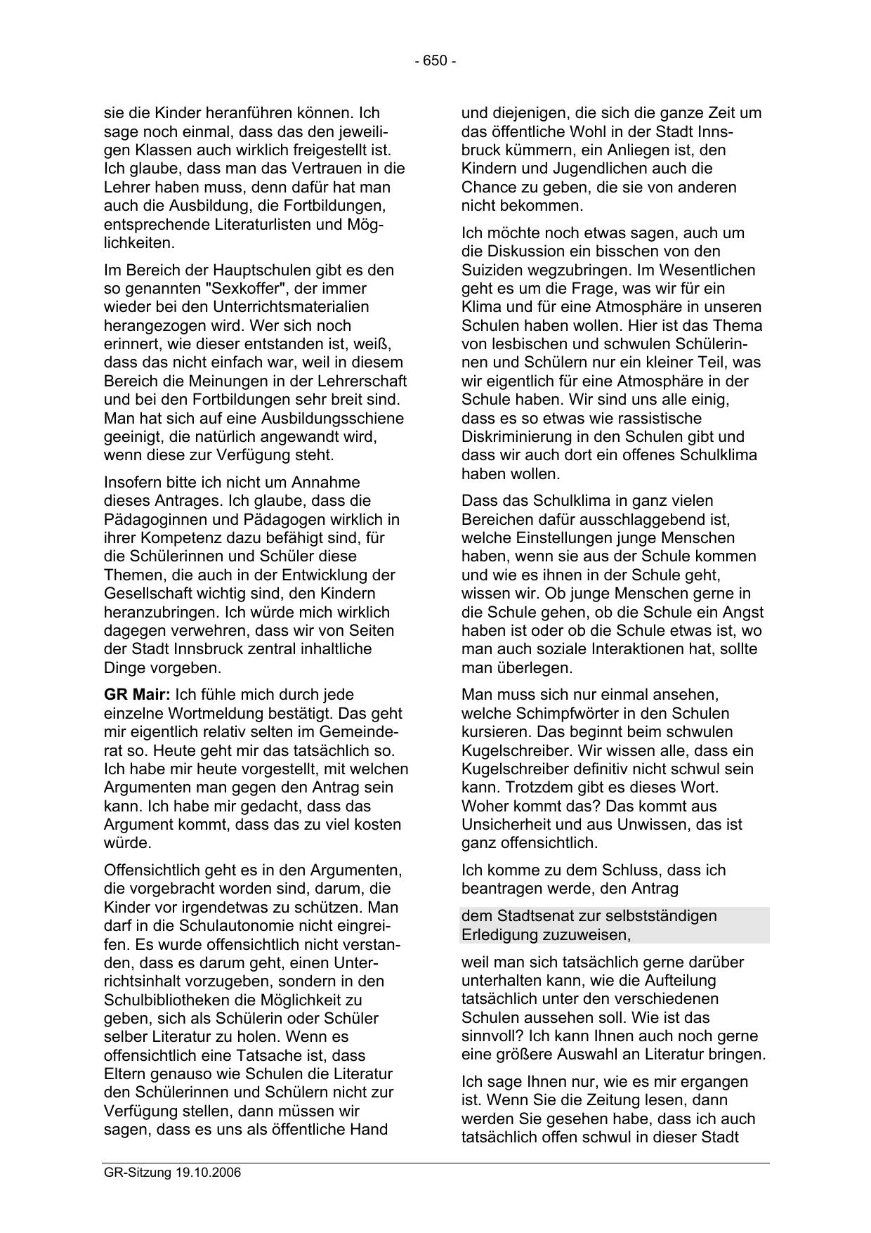 das öffentliche Wohl in der Stadt Innsbruck kümmern, ein Anliegen ist, den