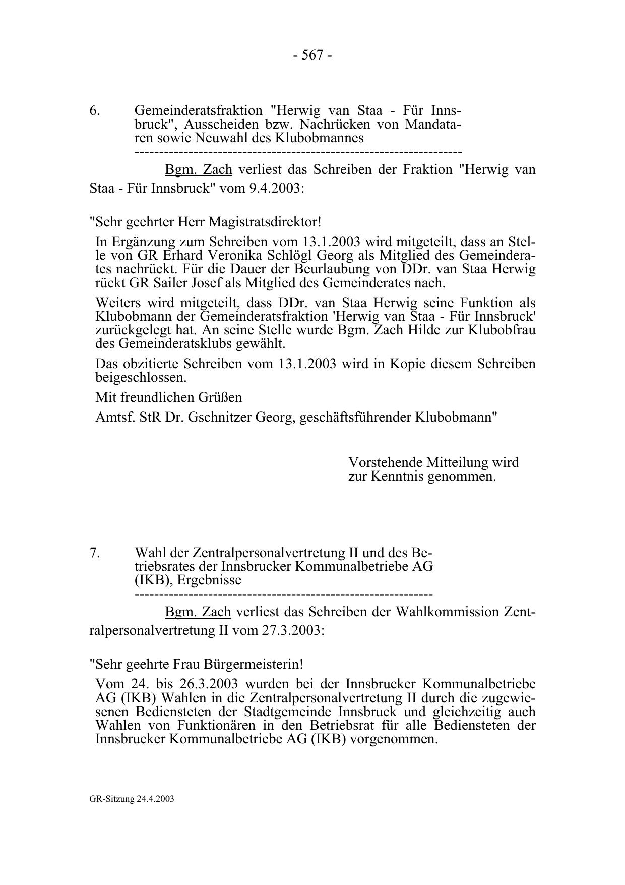 ------------------------------------------------------------Bgm. Zach verliest das Schreiben der Wahlkommission Zentralpersonalvertretung II vom 27.3.2003: