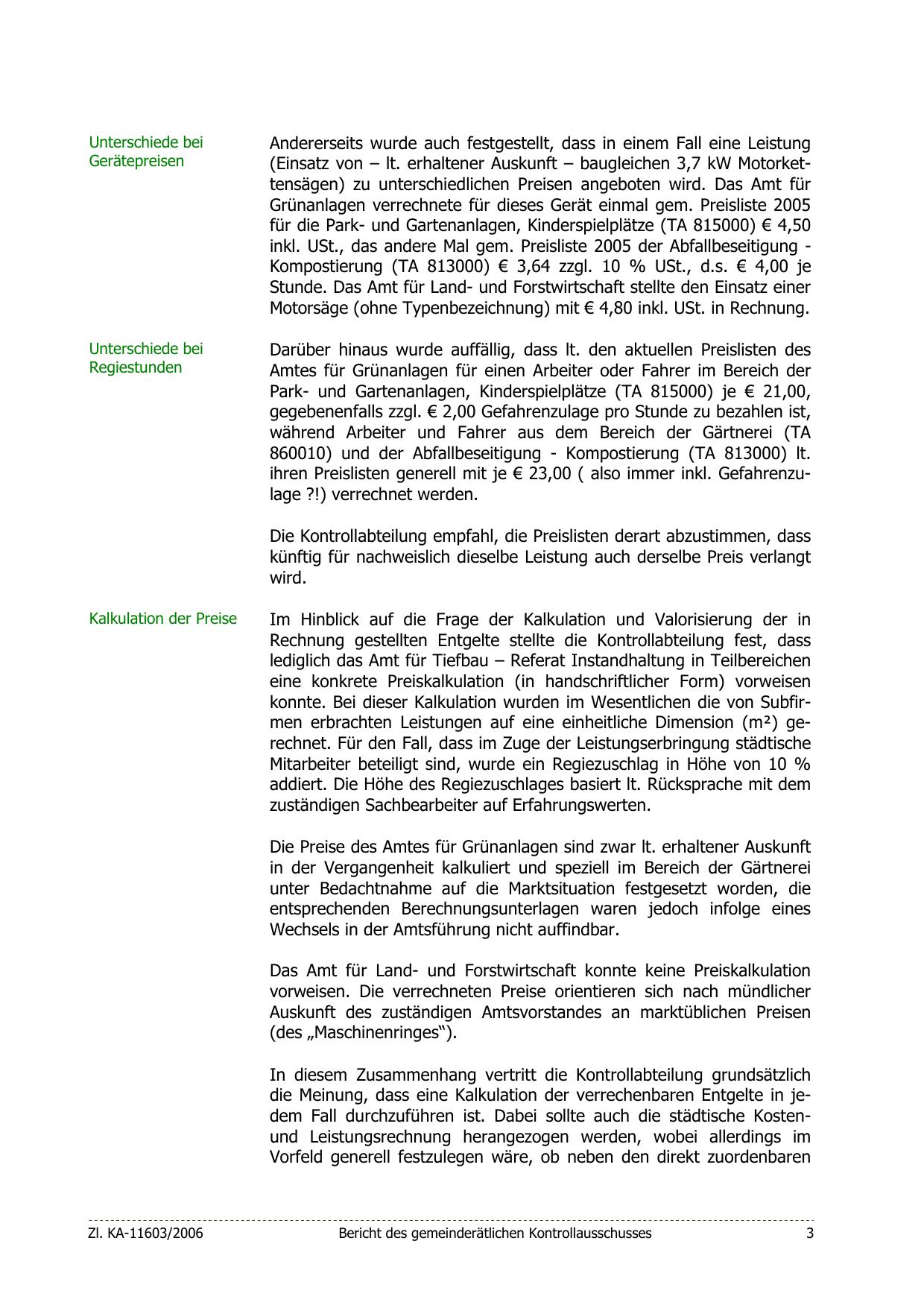 Grünanlagen verrechnete für dieses Gerät einmal gem. Preisliste 2005