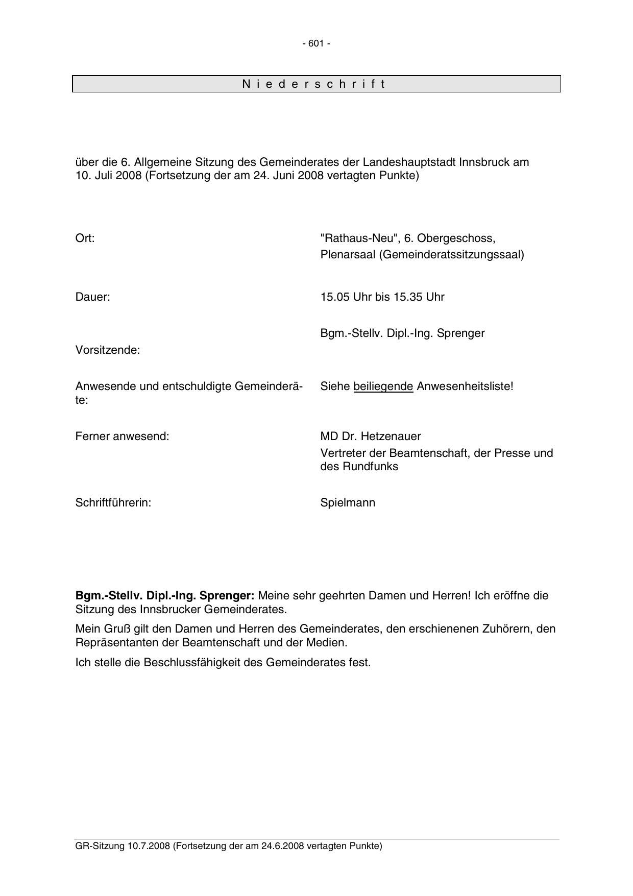GR-Sitzung 10.7.2008 (Fortsetzung der am 24.6.2008 vertagten Punkte)
