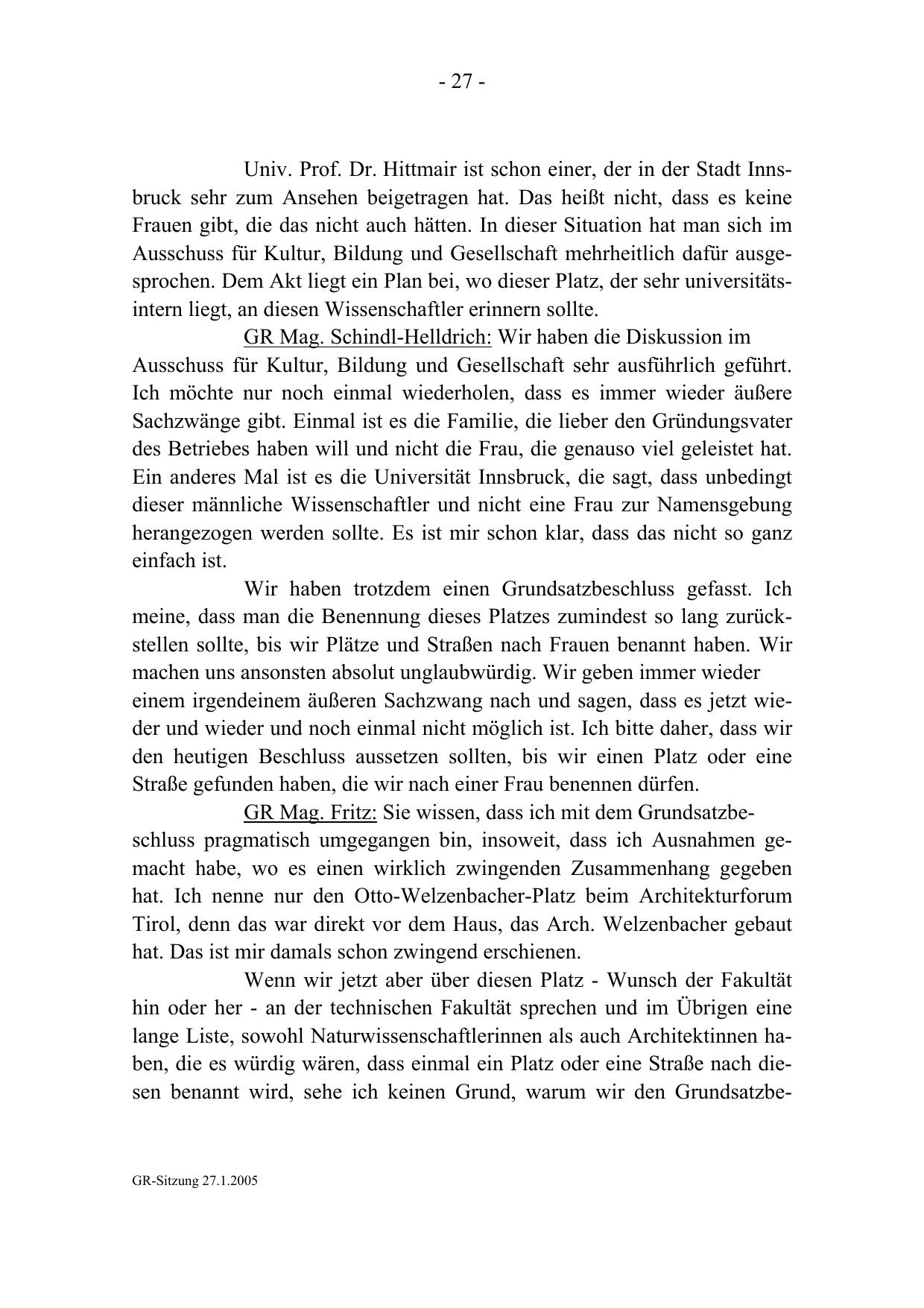 meine, dass man die Benennung dieses Platzes zumindest so lang zurückstellen sollte, bis wir Plätze und Straßen nach Frauen benannt haben. Wir