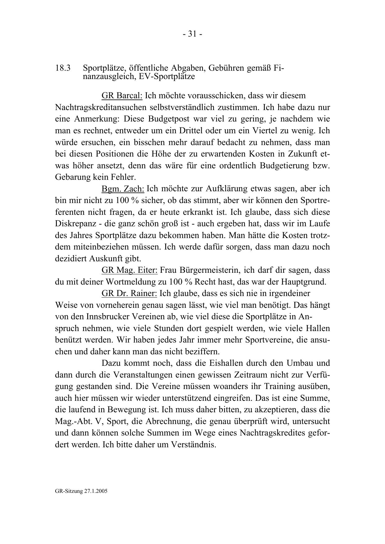 bin mir nicht zu 100 % sicher, ob das stimmt, aber wir können den Sportreferenten nicht fragen, da er heute erkrankt ist. Ich glaube, dass sich diese