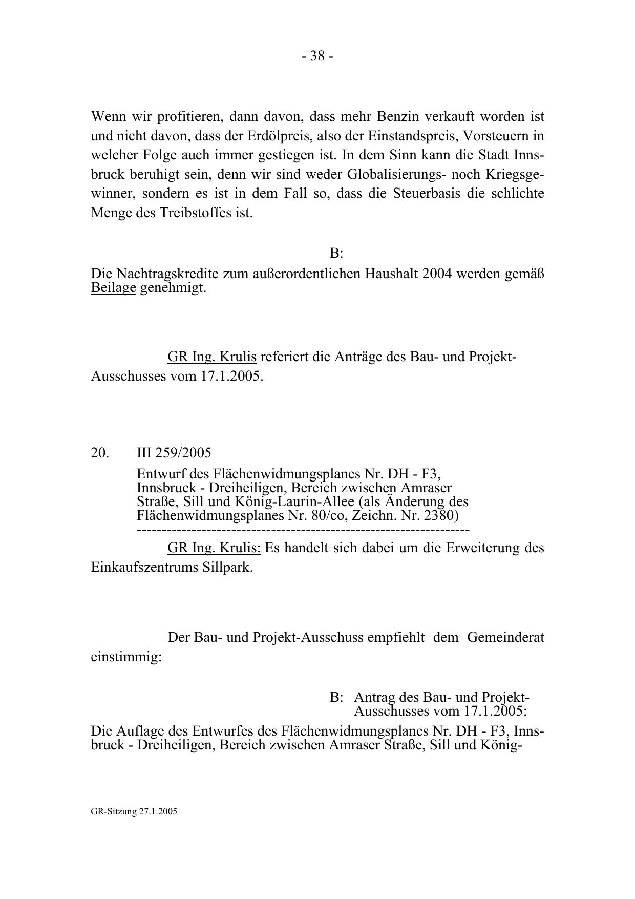 GR Ing. Krulis referiert die Anträge des Bau- und ProjektAusschusses vom 17.1.2005.