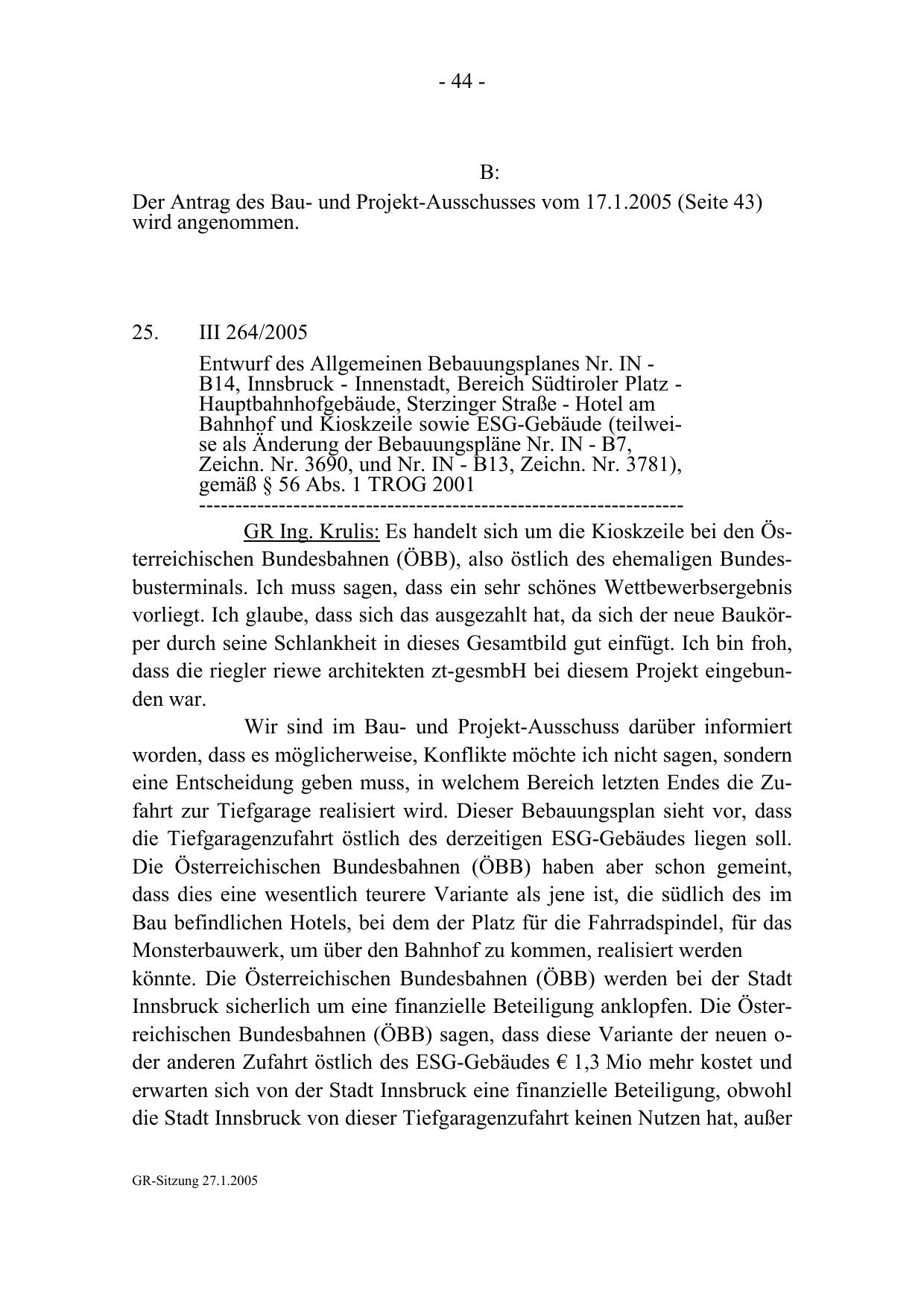 Der Antrag des Bau- und Projekt-Ausschusses vom 17.1.2005 (Seite 43)