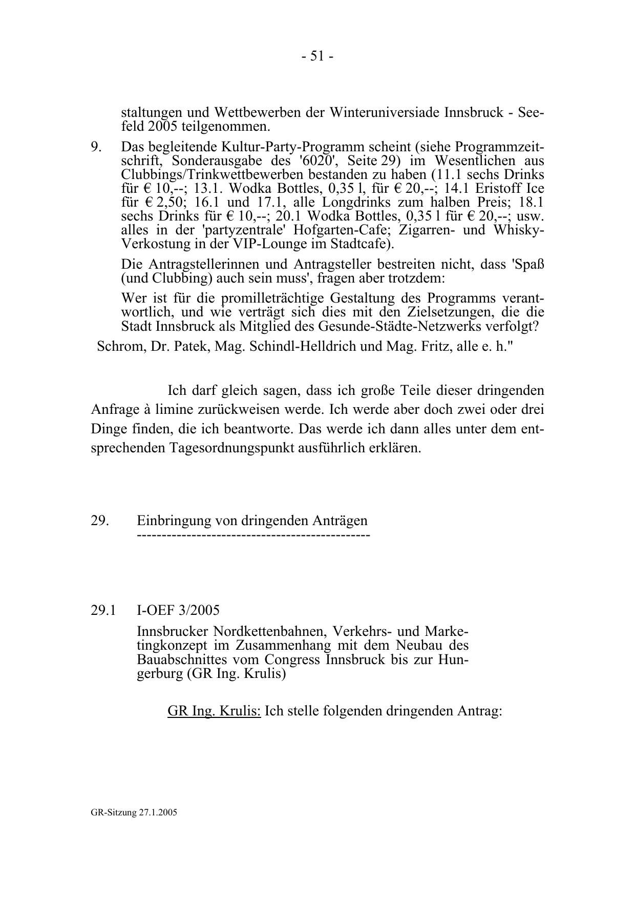 GR Ing. Krulis: Ich stelle folgenden dringenden Antrag: