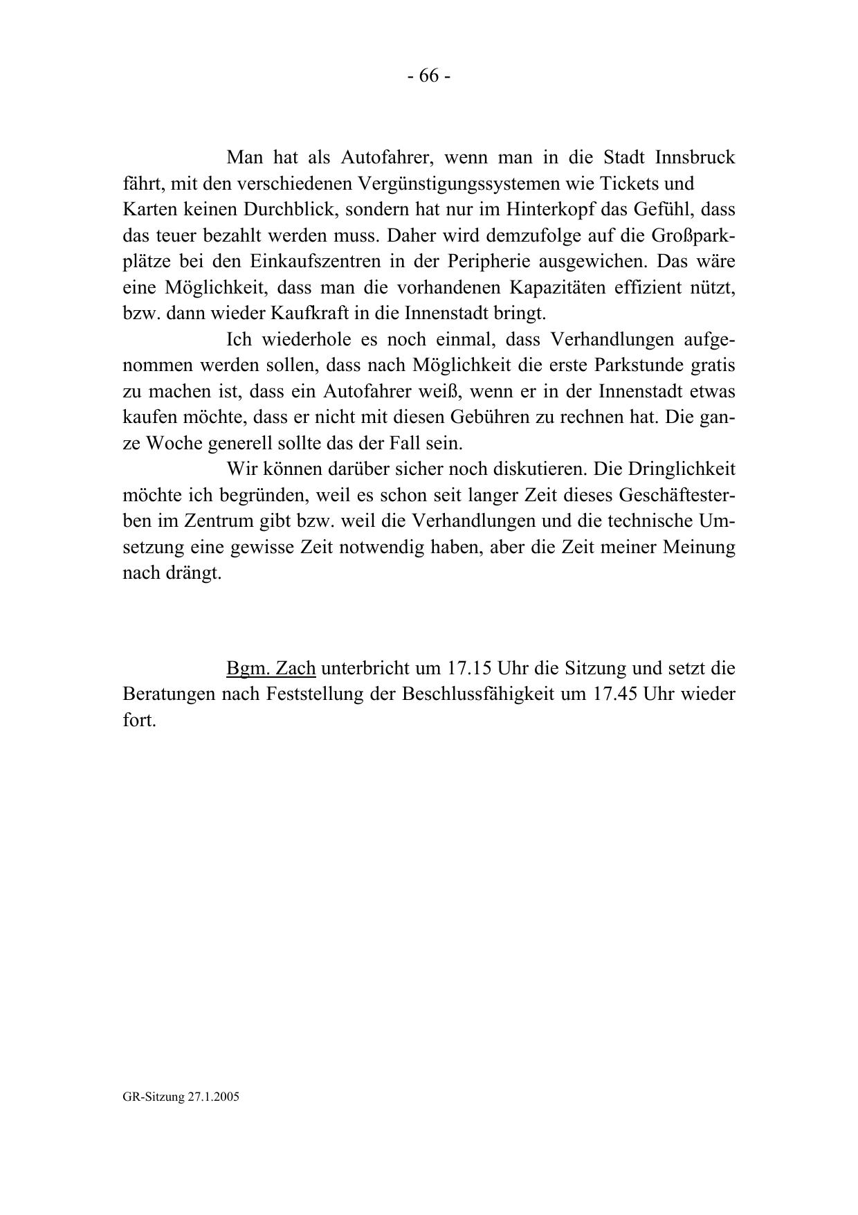 Bgm. Zach unterbricht um 17.15 Uhr die Sitzung und setzt die