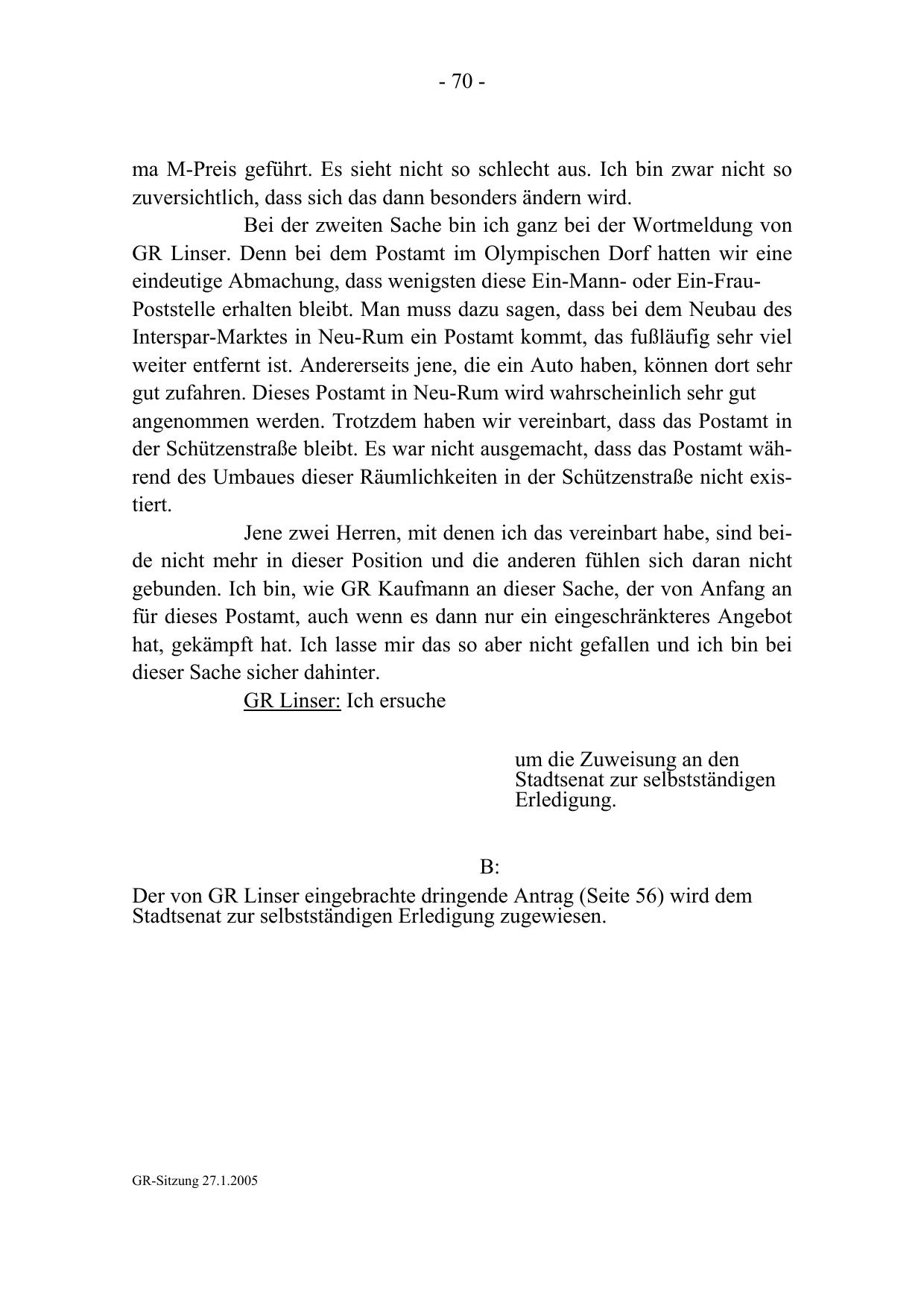 Der von GR Linser eingebrachte dringende Antrag (Seite 56) wird dem