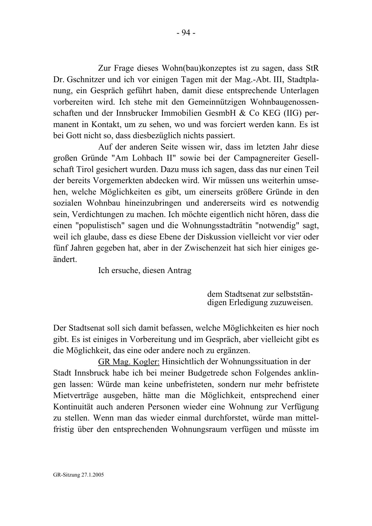 GR-Sitzung 27.1.2005
