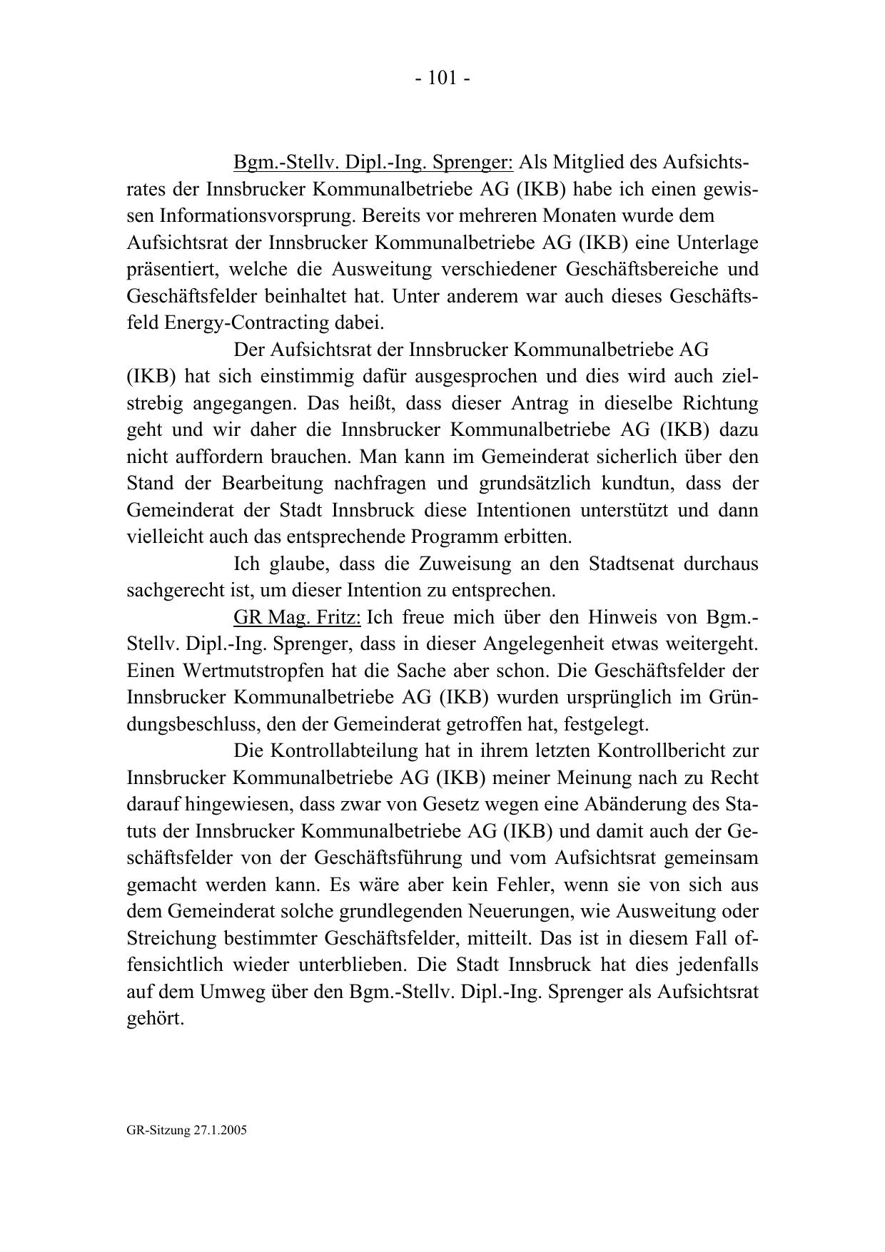 Bgm.-Stellv. Dipl.-Ing. Sprenger: Als Mitglied des Aufsichtsrates der Innsbrucker Kommunalbetriebe AG (IKB) habe ich einen gewissen Informationsvorsprung. Bereits vor mehreren Monaten wurde dem