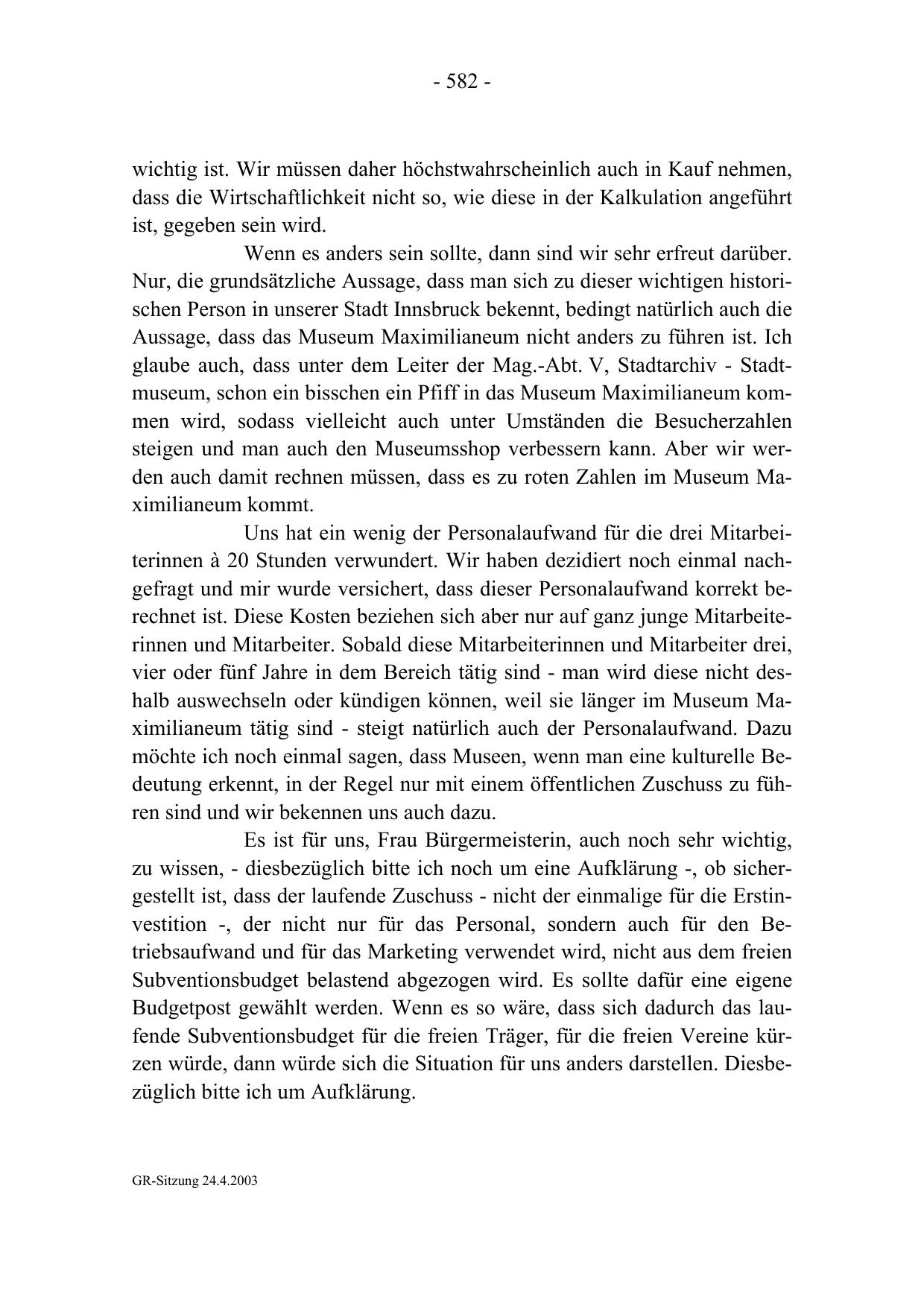 glaube auch, dass unter dem Leiter der Mag.-Abt. V, Stadtarchiv - Stadtmuseum, schon ein bisschen ein Pfiff in das Museum Maximilianeum kommen wird, sodass vielleicht auch unter Umständen die Besucherzahlen