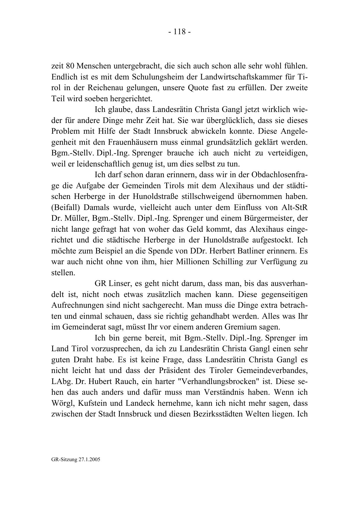 Problem mit Hilfe der Stadt Innsbruck abwickeln konnte. Diese Angelegenheit mit den Frauenhäusern muss einmal grundsätzlich geklärt werden.