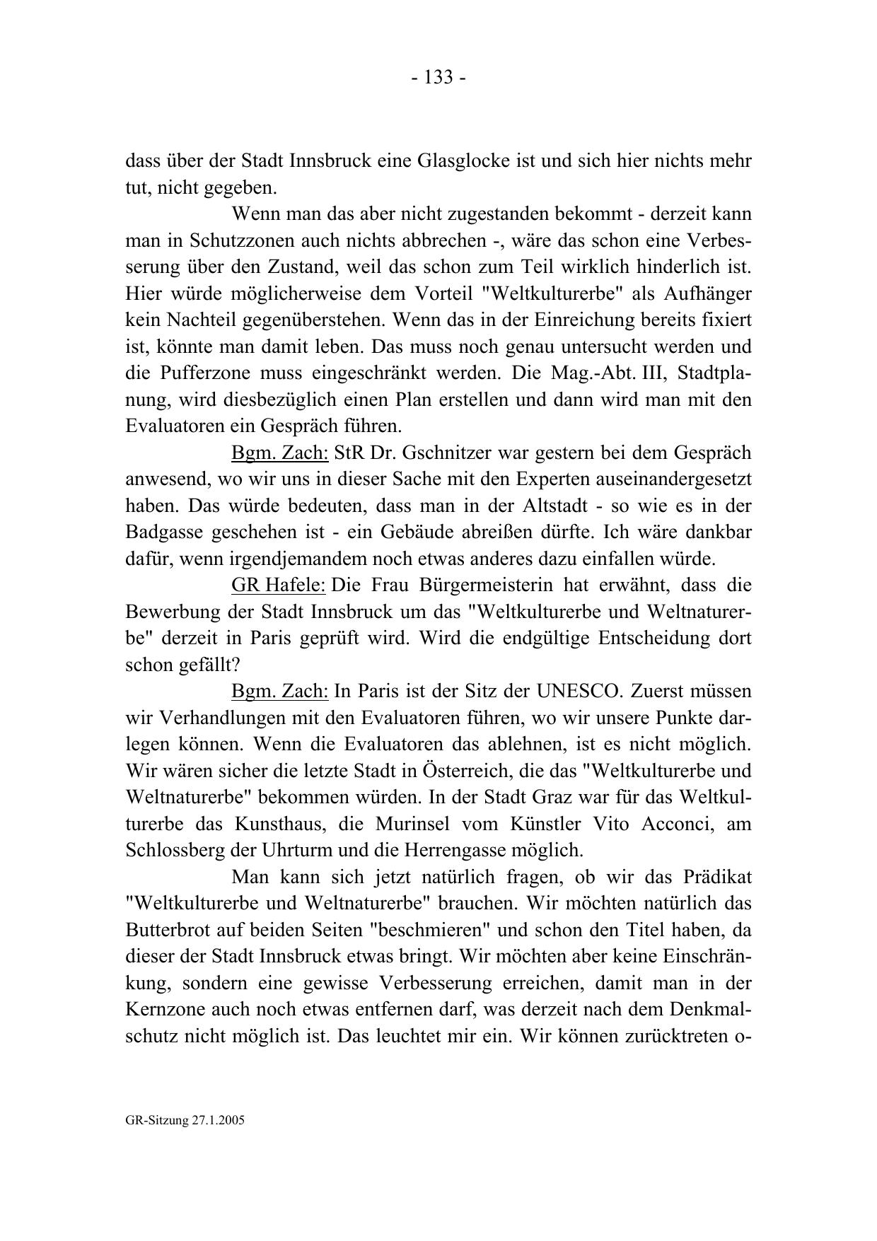 Bgm. Zach: In Paris ist der Sitz der UNESCO. Zuerst müssen