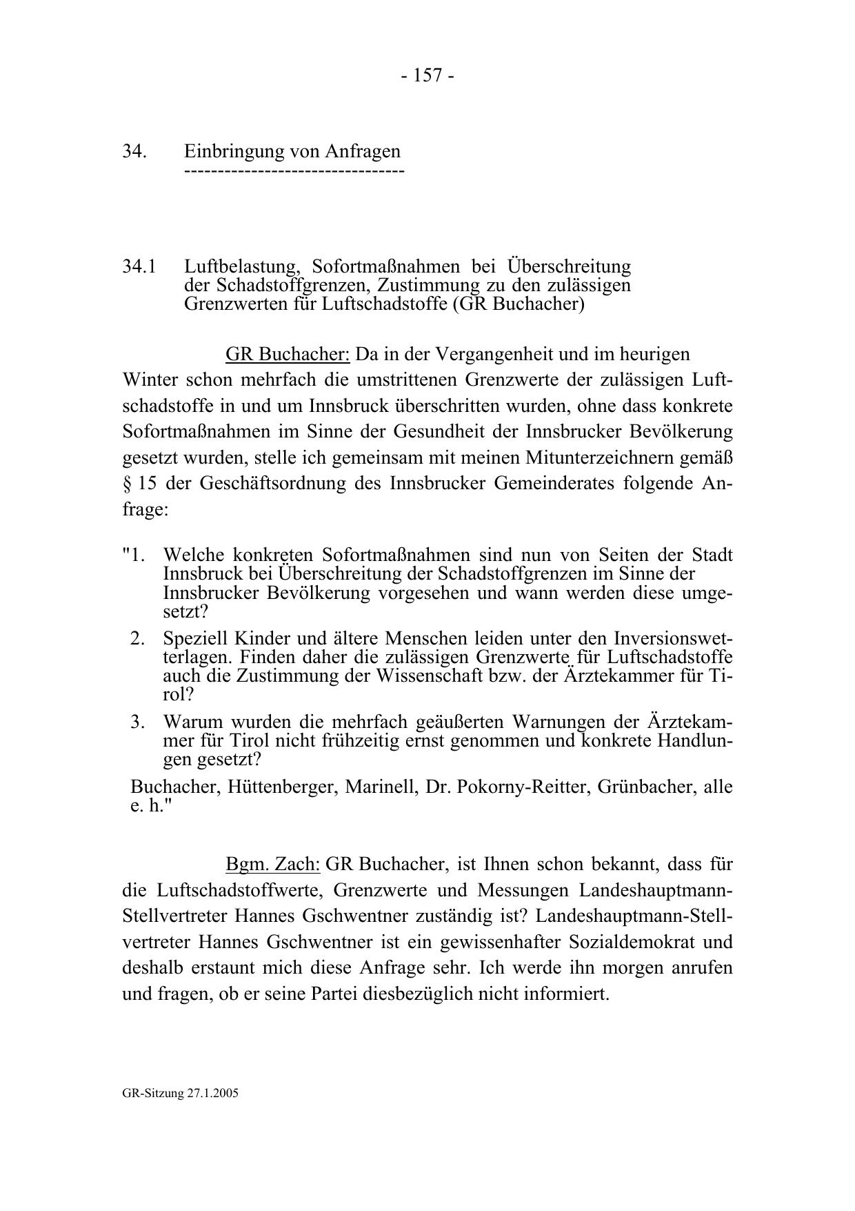 Bgm. Zach: GR Buchacher, ist Ihnen schon bekannt, dass für