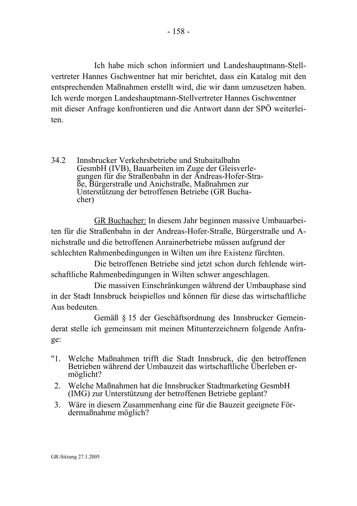 Gemäß § 15 der Geschäftsordnung des Innsbrucker Gemeinderat stelle ich gemeinsam mit meinen Mitunterzeichnern folgende Anfrage: