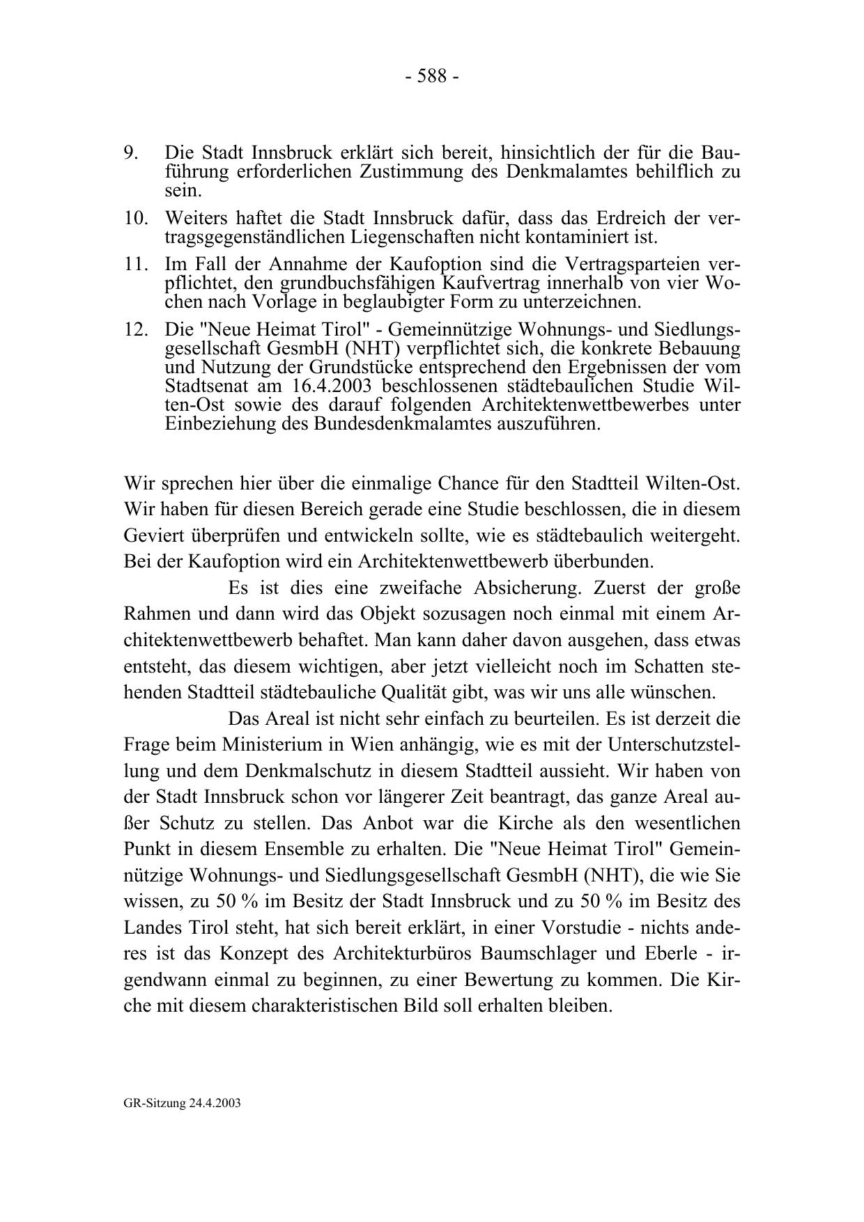 der Stadt Innsbruck schon vor längerer Zeit beantragt, das ganze Areal außer Schutz zu stellen. Das Anbot war die Kirche als den wesentlichen