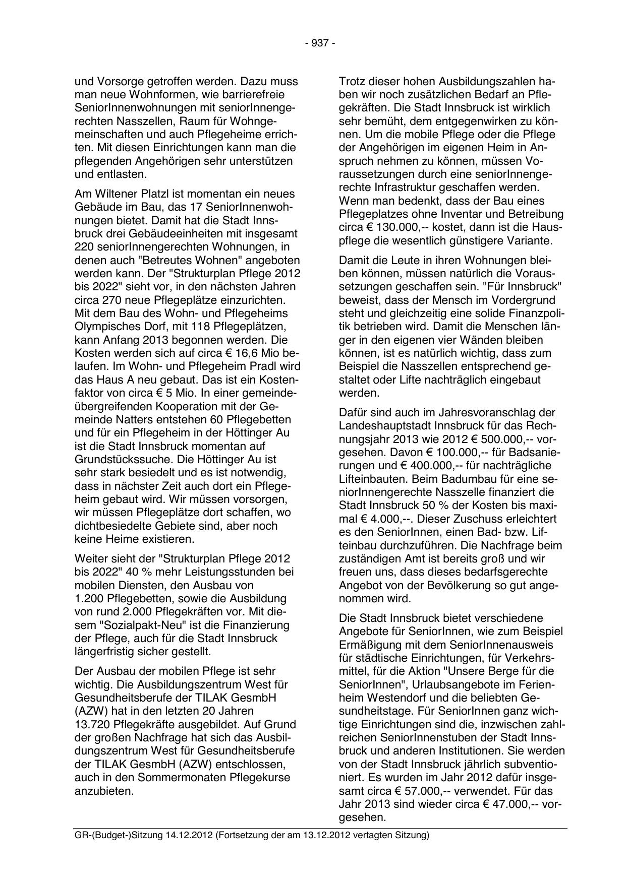 GR-(Budget-)Sitzung 14.12.2012 (Fortsetzung der am 13.12.2012 vertagten Sitzung)