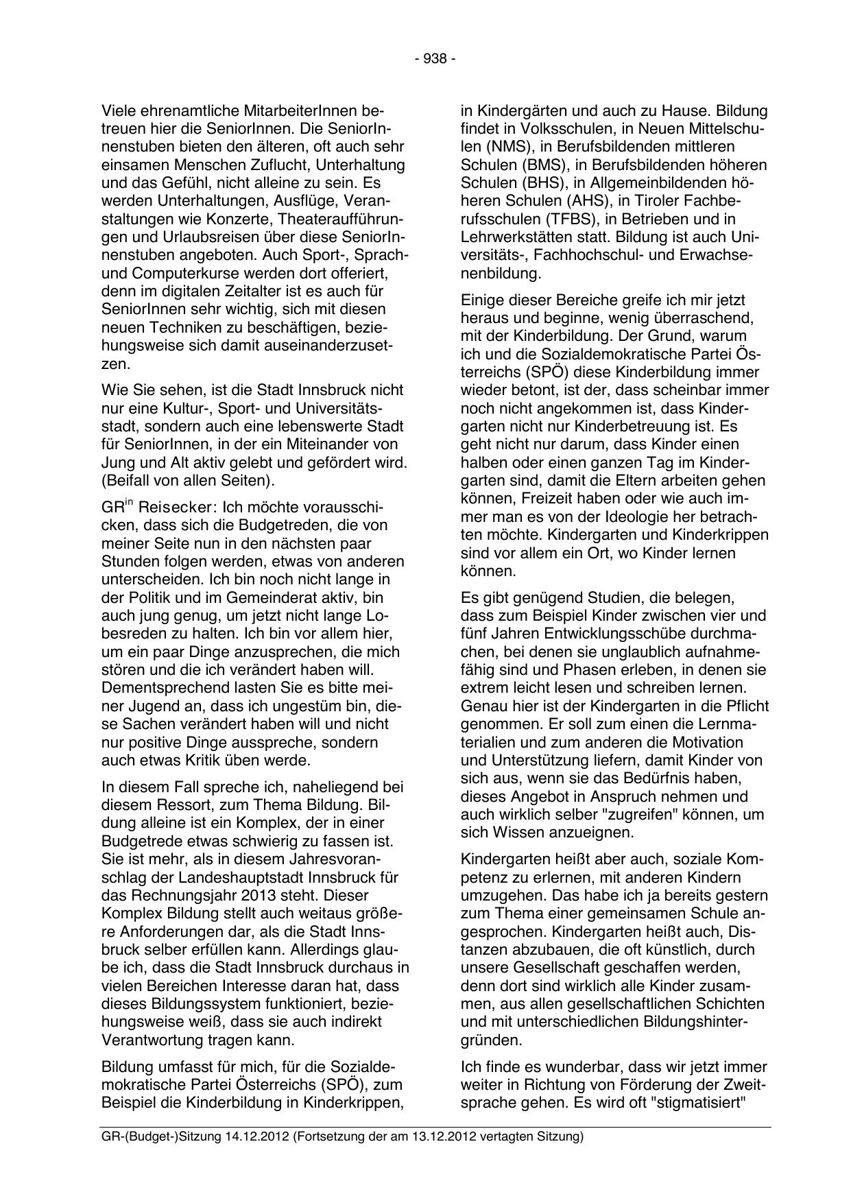 GR-(Budget-)Sitzung 14.12.2012 (Fortsetzung der am 13.12.2012 vertagten Sitzung)