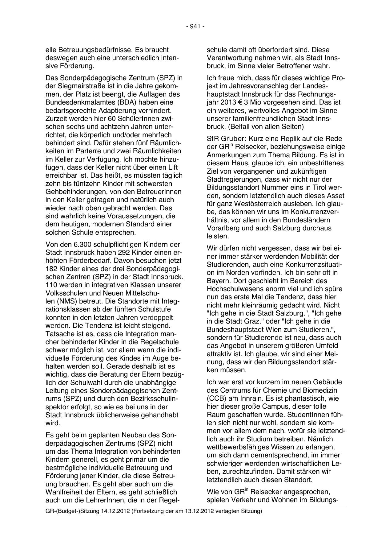 unserer familienfreundlichen Stadt Innsbruck. (Beifall von allen Seiten)