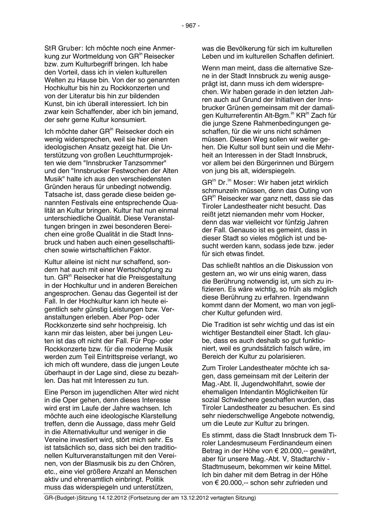 müssen. Diesen Weg sollen wir weiter gehen. Die Kultur soll bunt sein und die Mehrheit an Interessen in der Stadt Innsbruck,