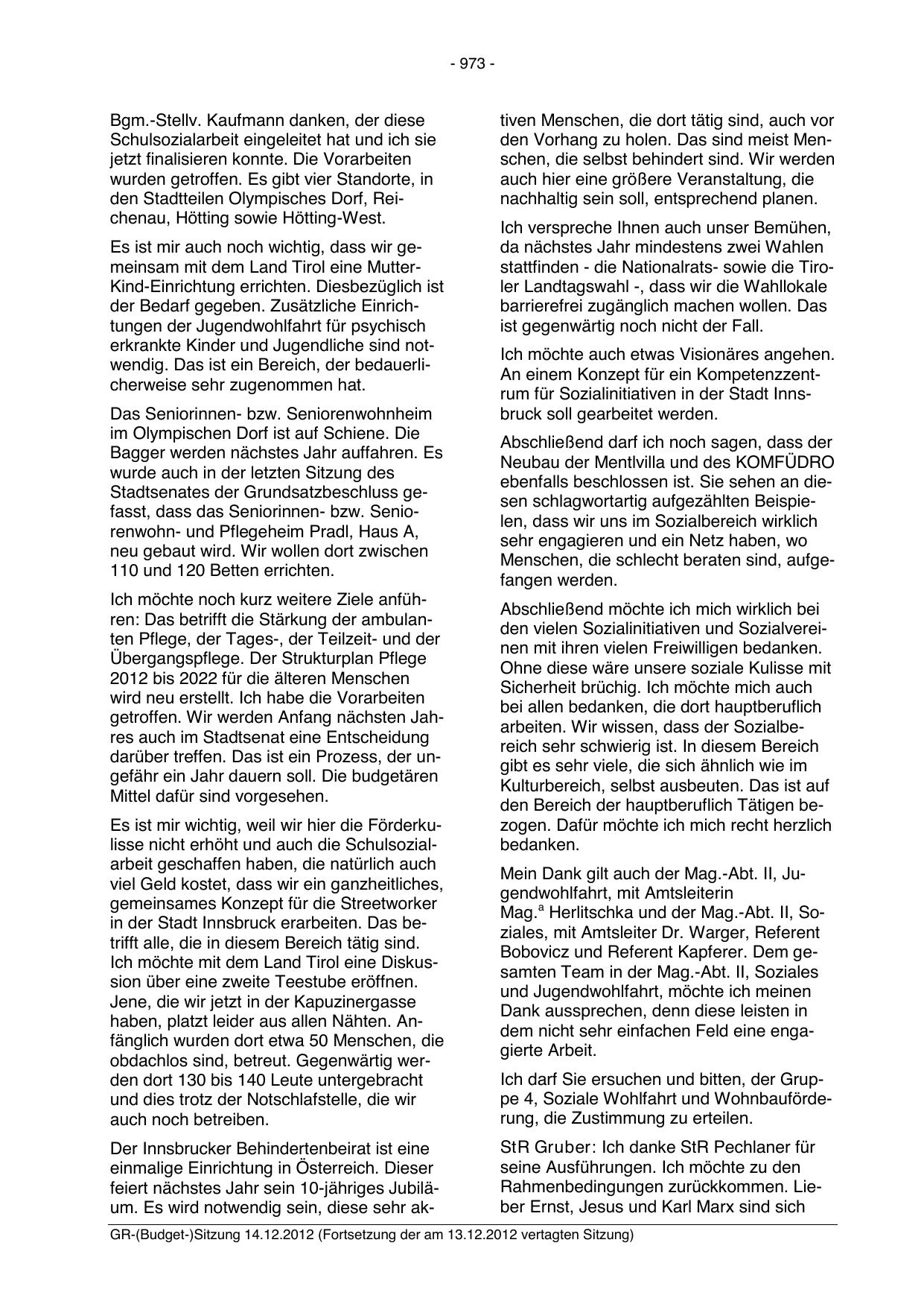 GR-(Budget-)Sitzung 14.12.2012 (Fortsetzung der am 13.12.2012 vertagten Sitzung)