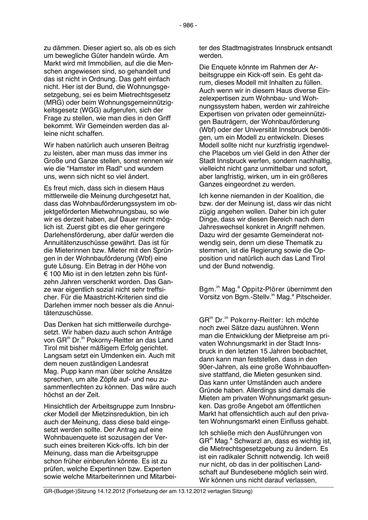 Hinsichtlich der Arbeitsgruppe zum Innsbrucker Modell der Mietzinsreduktion, bin ich