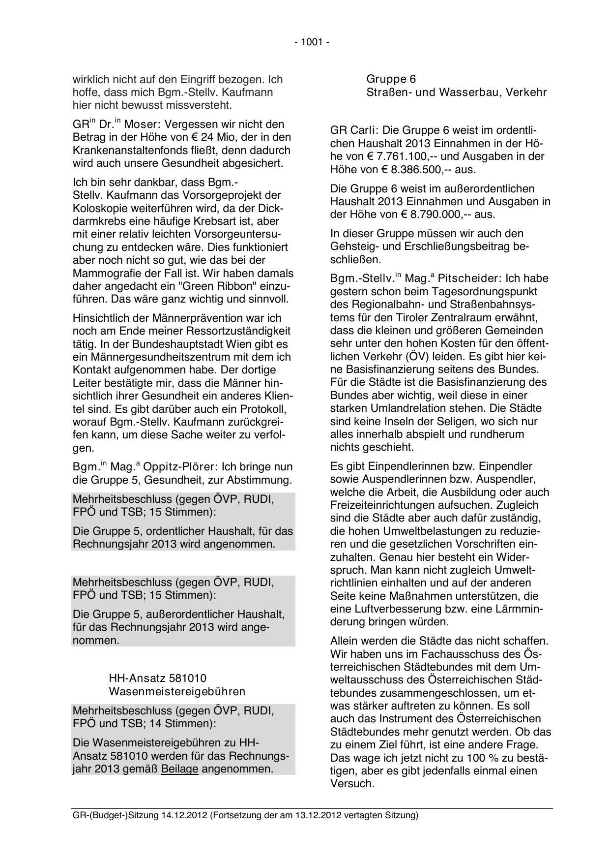 GR-(Budget-)Sitzung 14.12.2012 (Fortsetzung der am 13.12.2012 vertagten Sitzung)