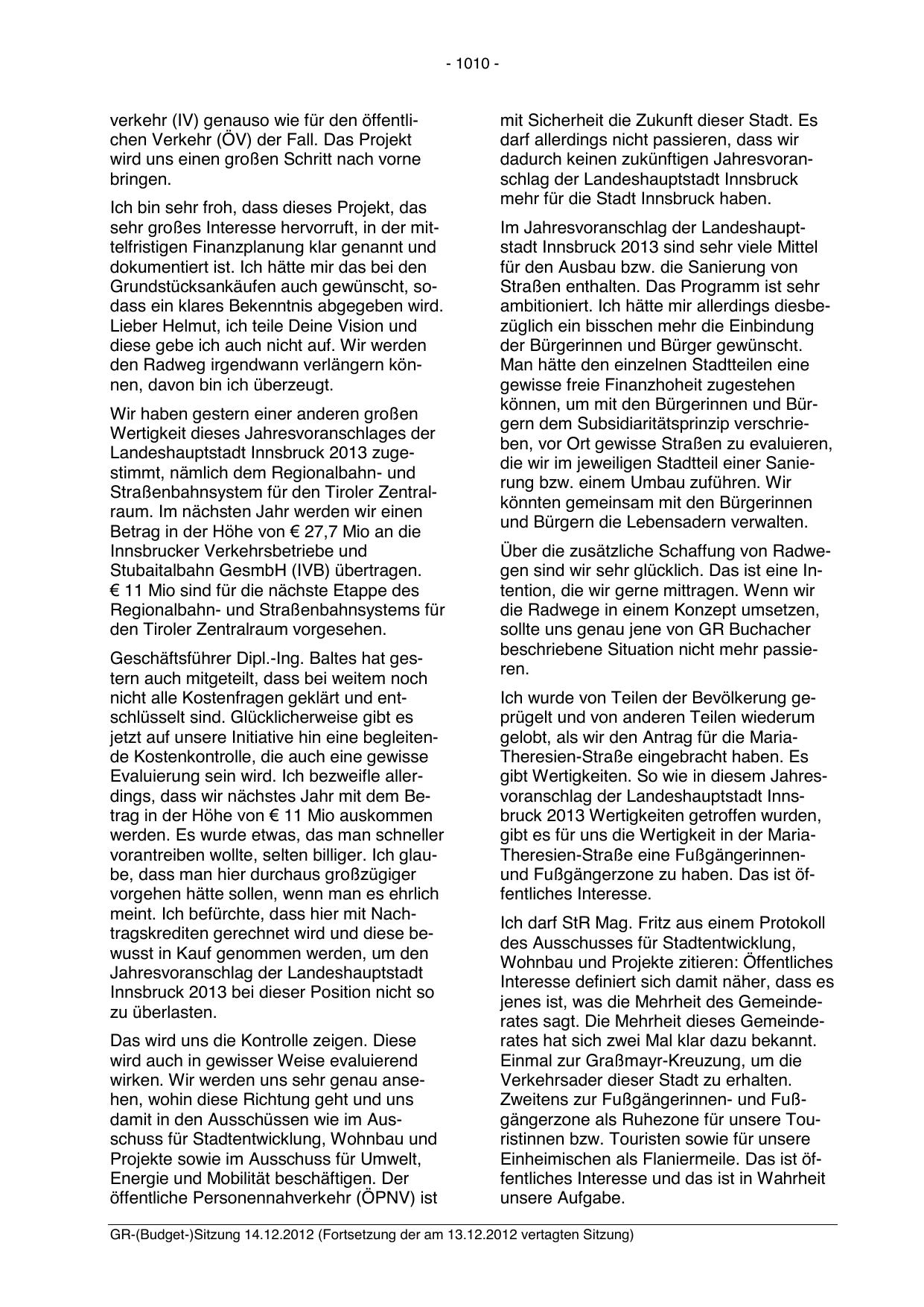 Ich darf StR Mag. Fritz aus einem Protokoll