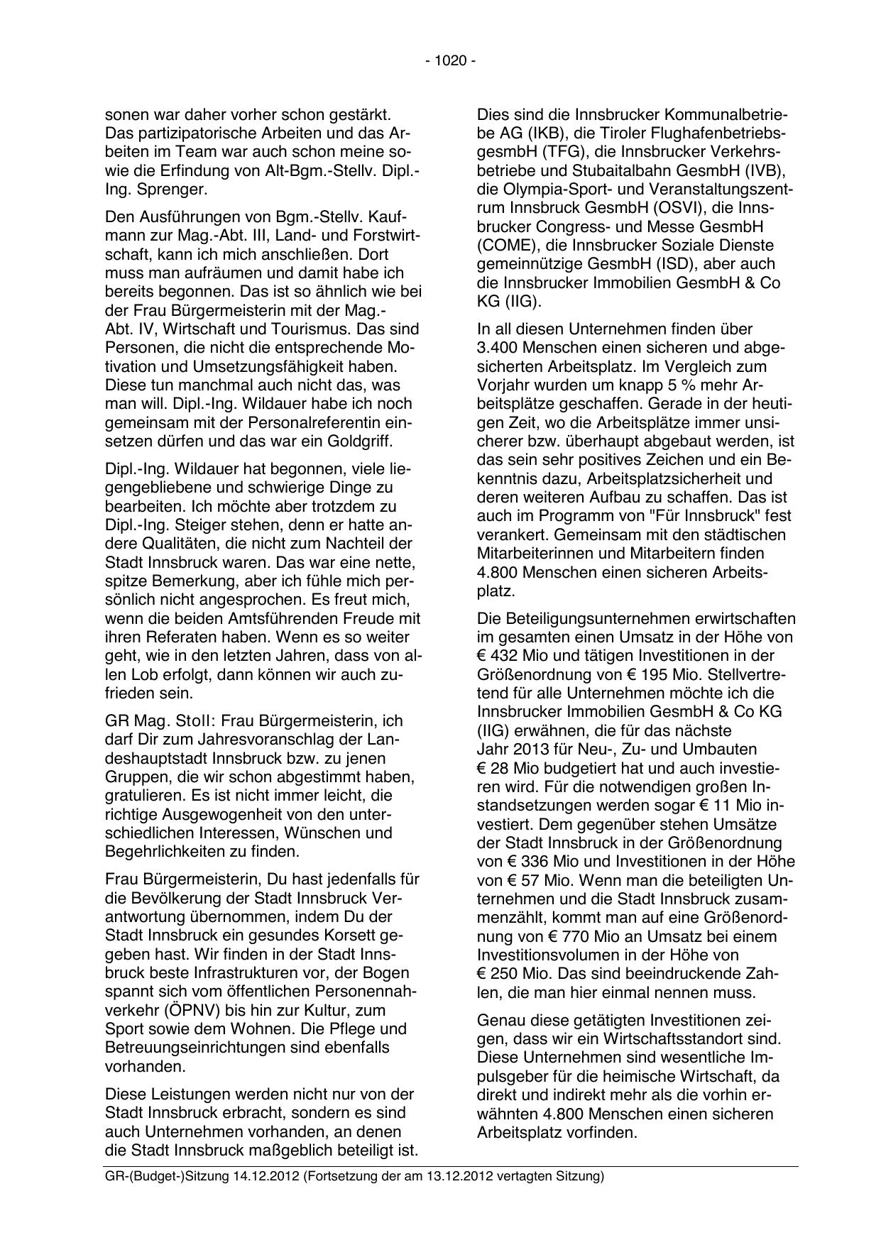 darf Dir zum Jahresvoranschlag der Landeshauptstadt Innsbruck bzw. zu jenen