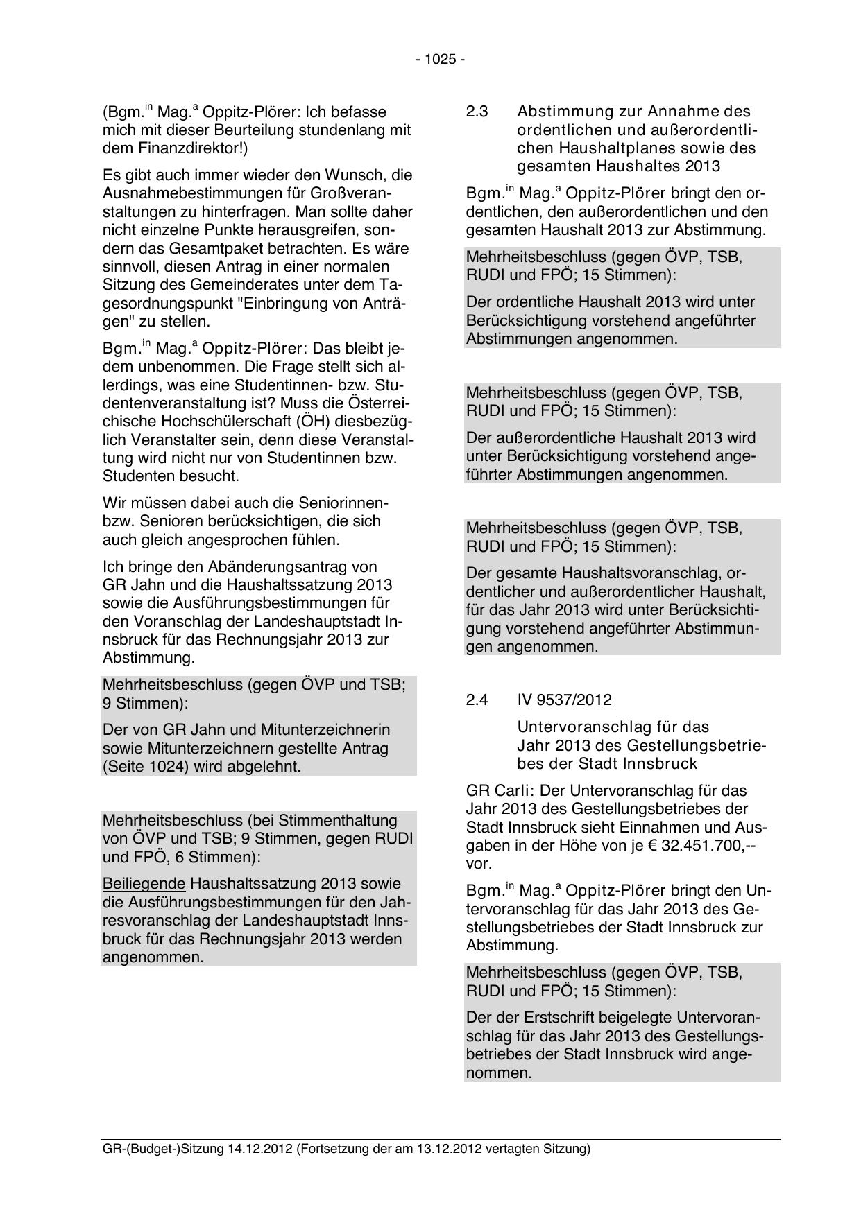 Mehrheitsbeschluss (gegen ÖVP und TSB;
