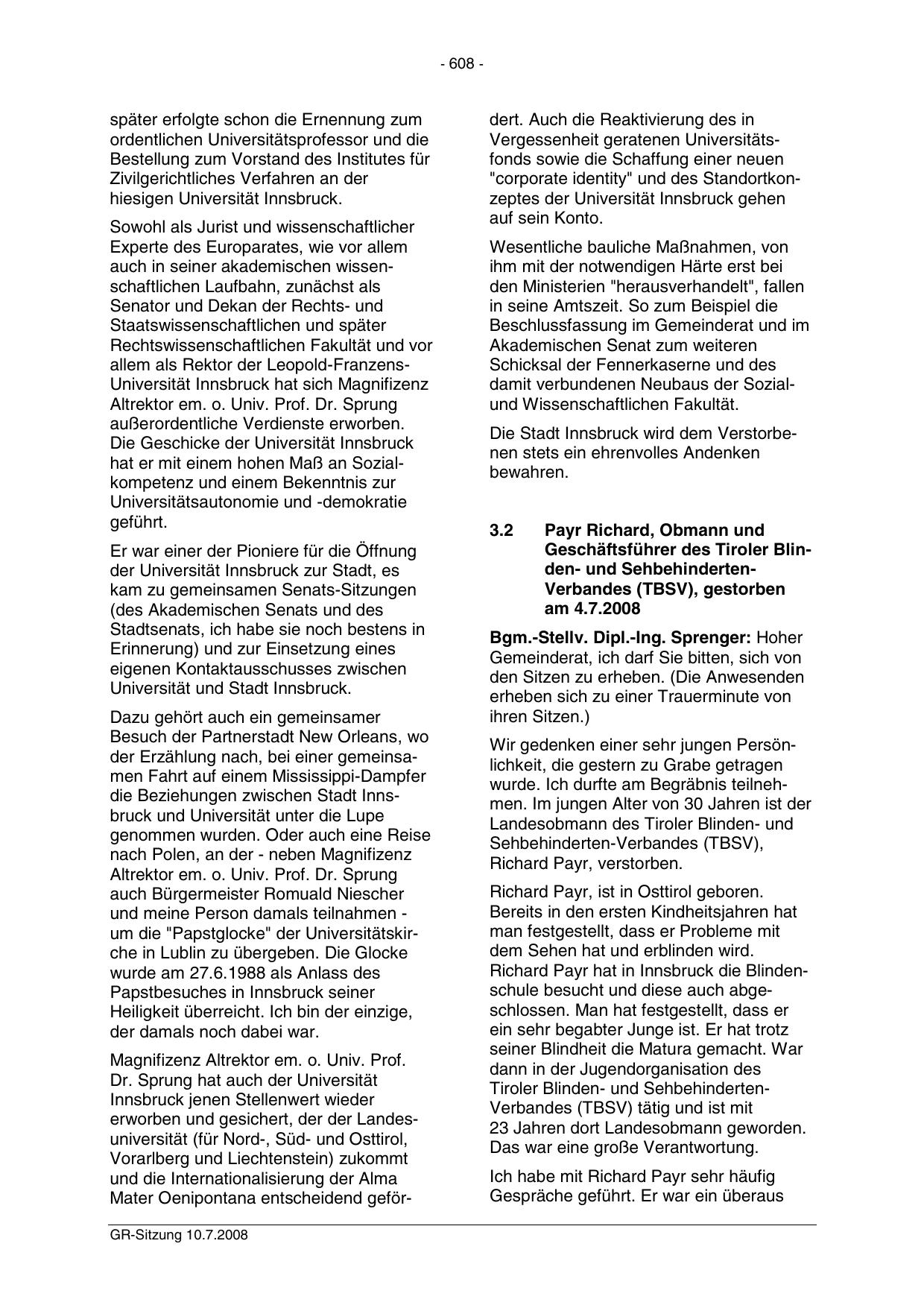 Mater Oenipontana entscheidend geförGR-Sitzung 10.7.2008