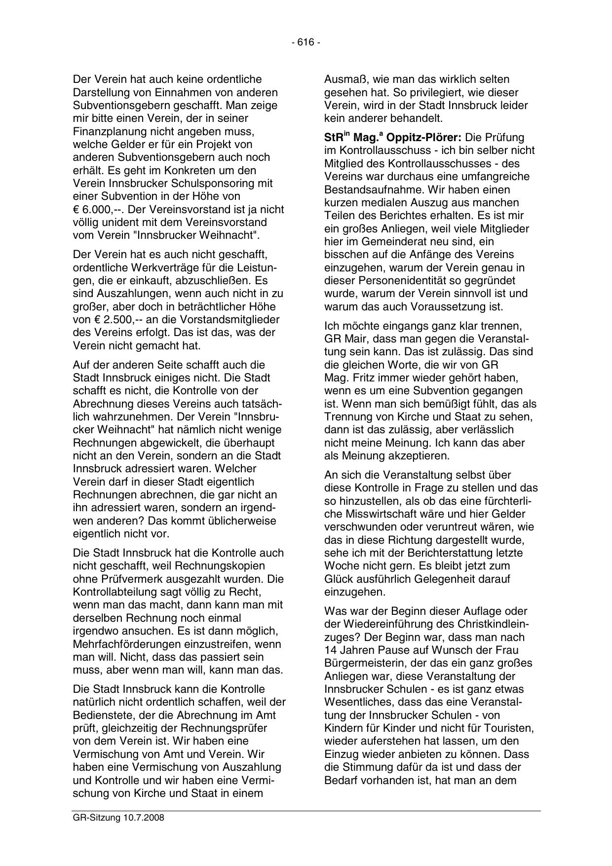 Abrechnung dieses Vereins auch tatsächlich wahrzunehmen. Der Verein "Innsbrucker Weihnacht" hat nämlich nicht wenige