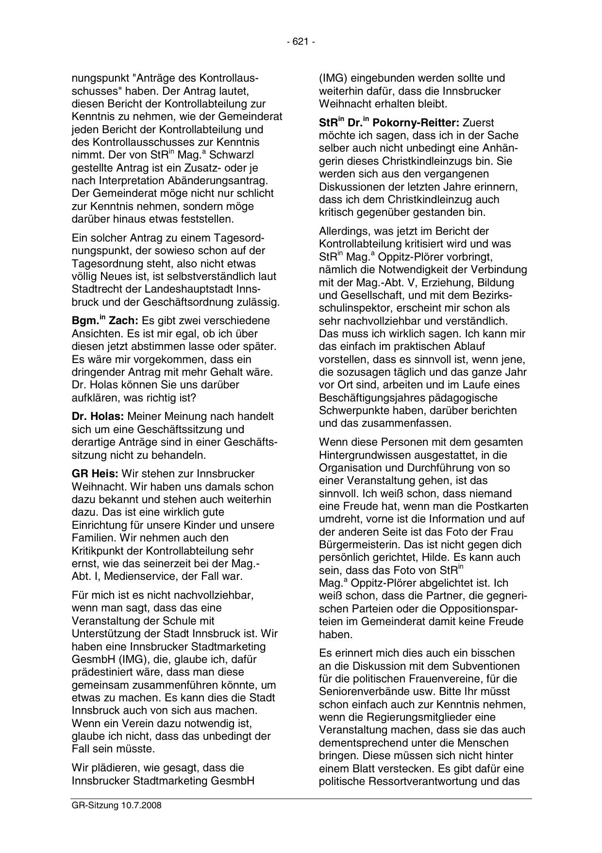 Stadtrecht der Landeshauptstadt Innsbruck und der Geschäftsordnung zulässig.