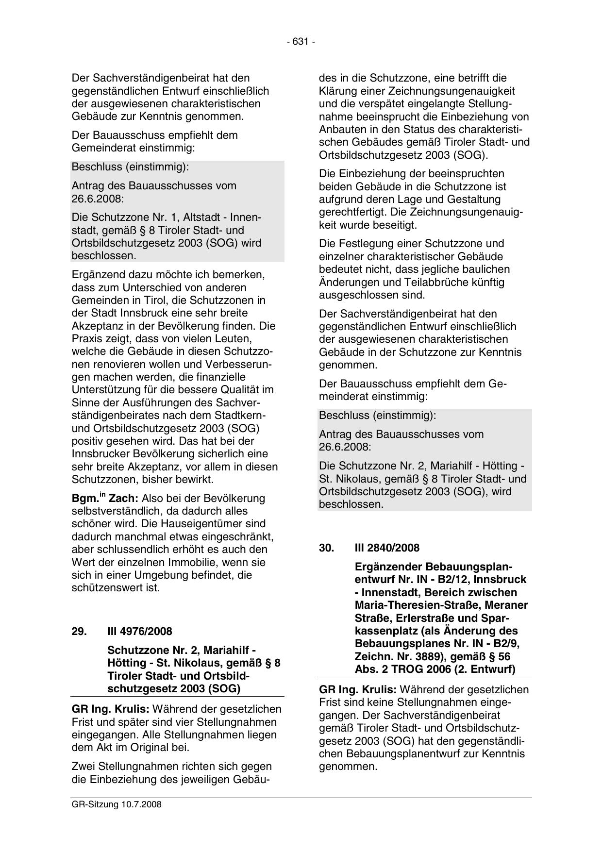 die Einbeziehung des jeweiligen GebäuGR-Sitzung 10.7.2008