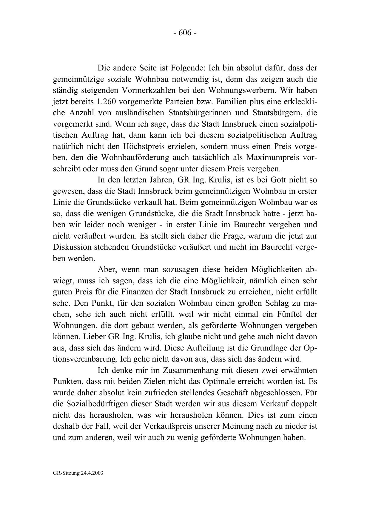 so, dass die wenigen Grundstücke, die die Stadt Innsbruck hatte - jetzt haben wir leider noch weniger - in erster Linie im Baurecht vergeben und