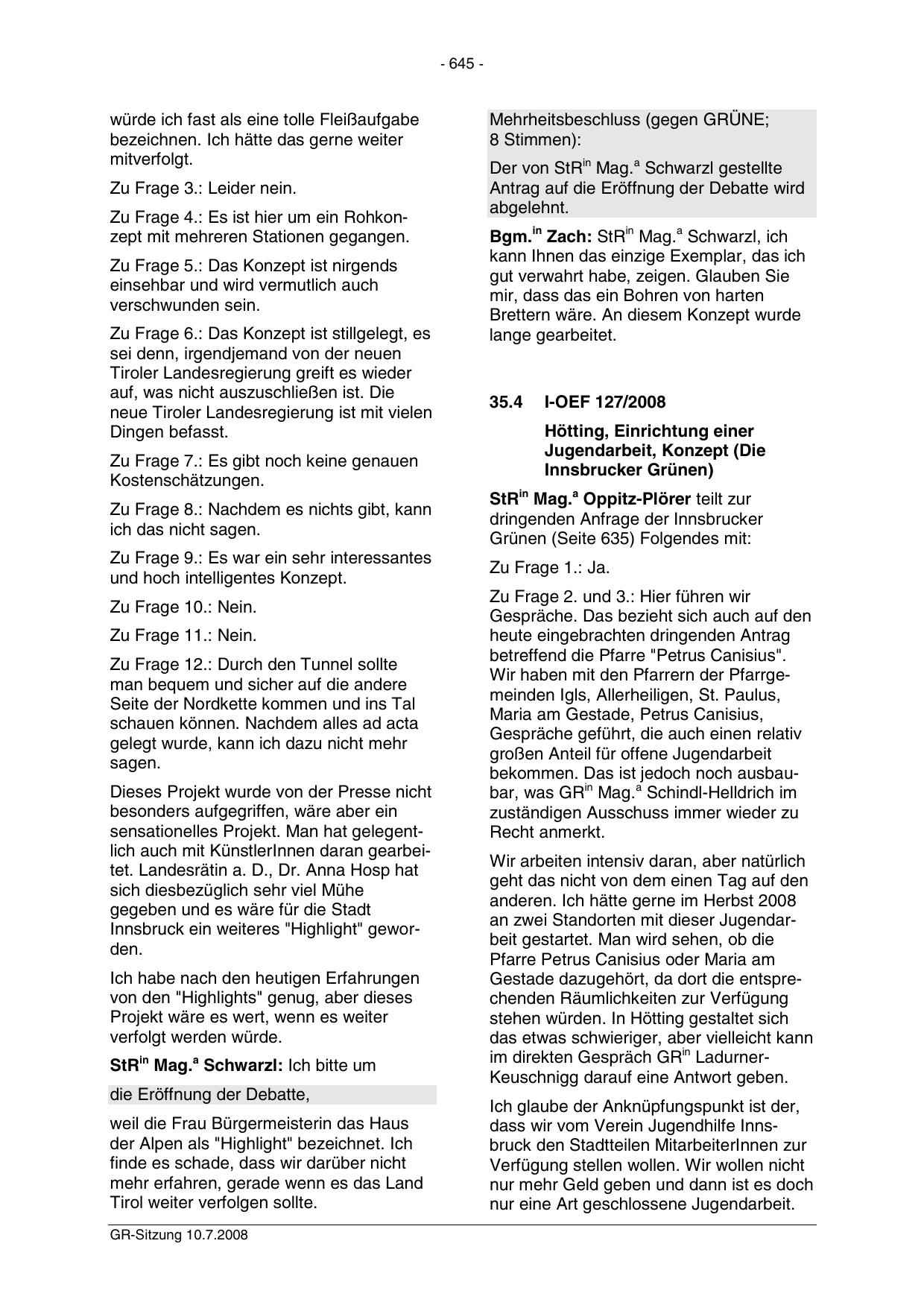 Bgm.in Zach: StRin Mag.a Schwarzl, ich