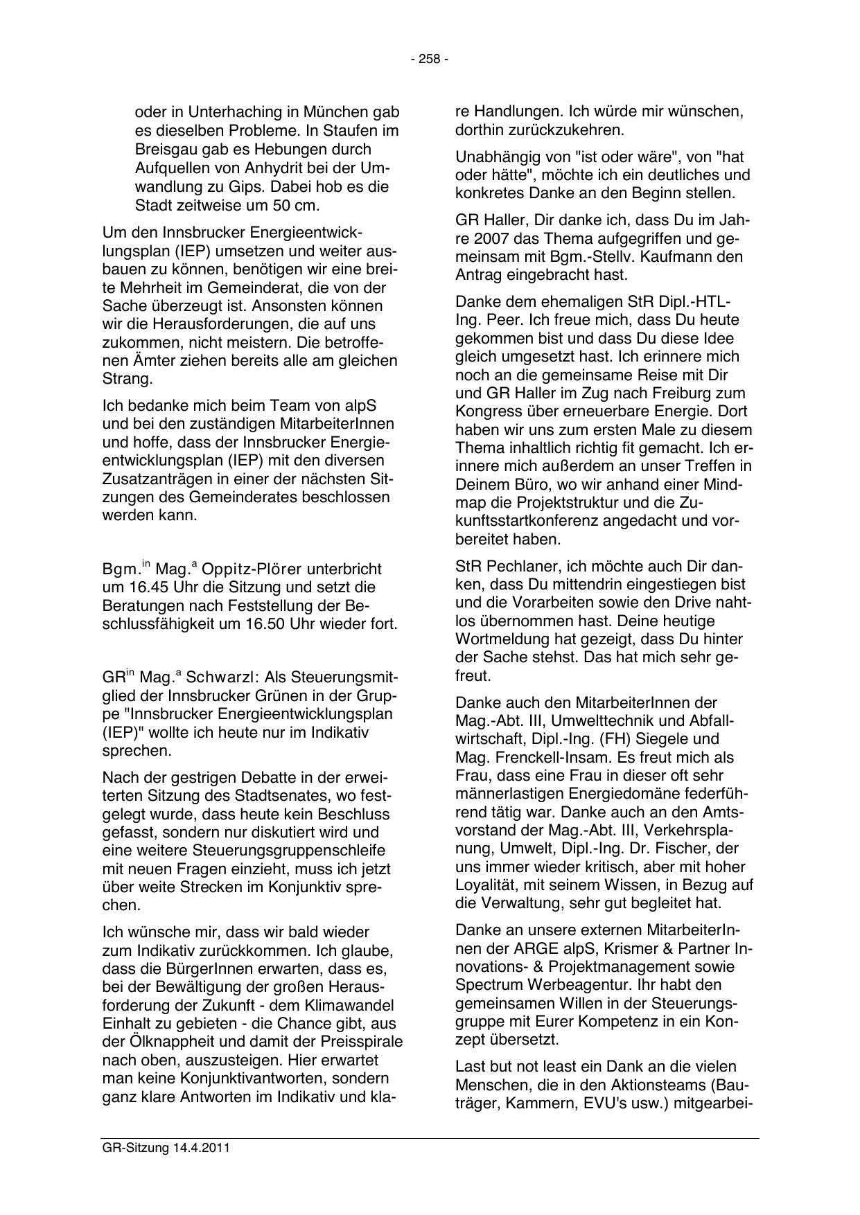 und hoffe, dass der Innsbrucker Energieentwicklungsplan (IEP) mit den diversen