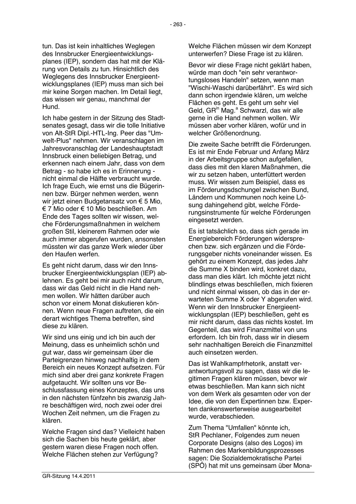 Es geht nicht darum, dass wir den Innsbrucker Energieentwicklungsplan (IEP) ablehnen. Es geht bei mir auch nicht darum,