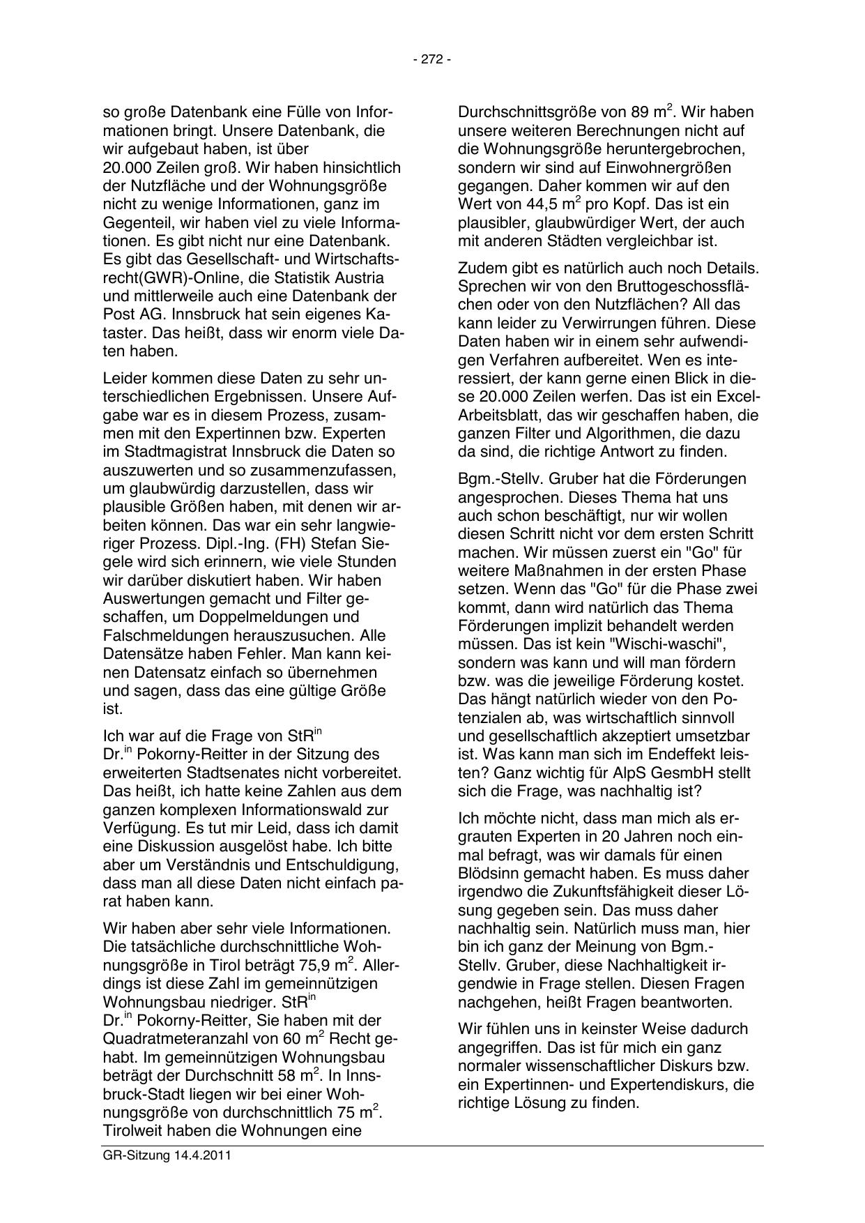 bin ich ganz der Meinung von Bgm.Stellv. Gruber, diese Nachhaltigkeit irgendwie in Frage stellen. Diesen Fragen