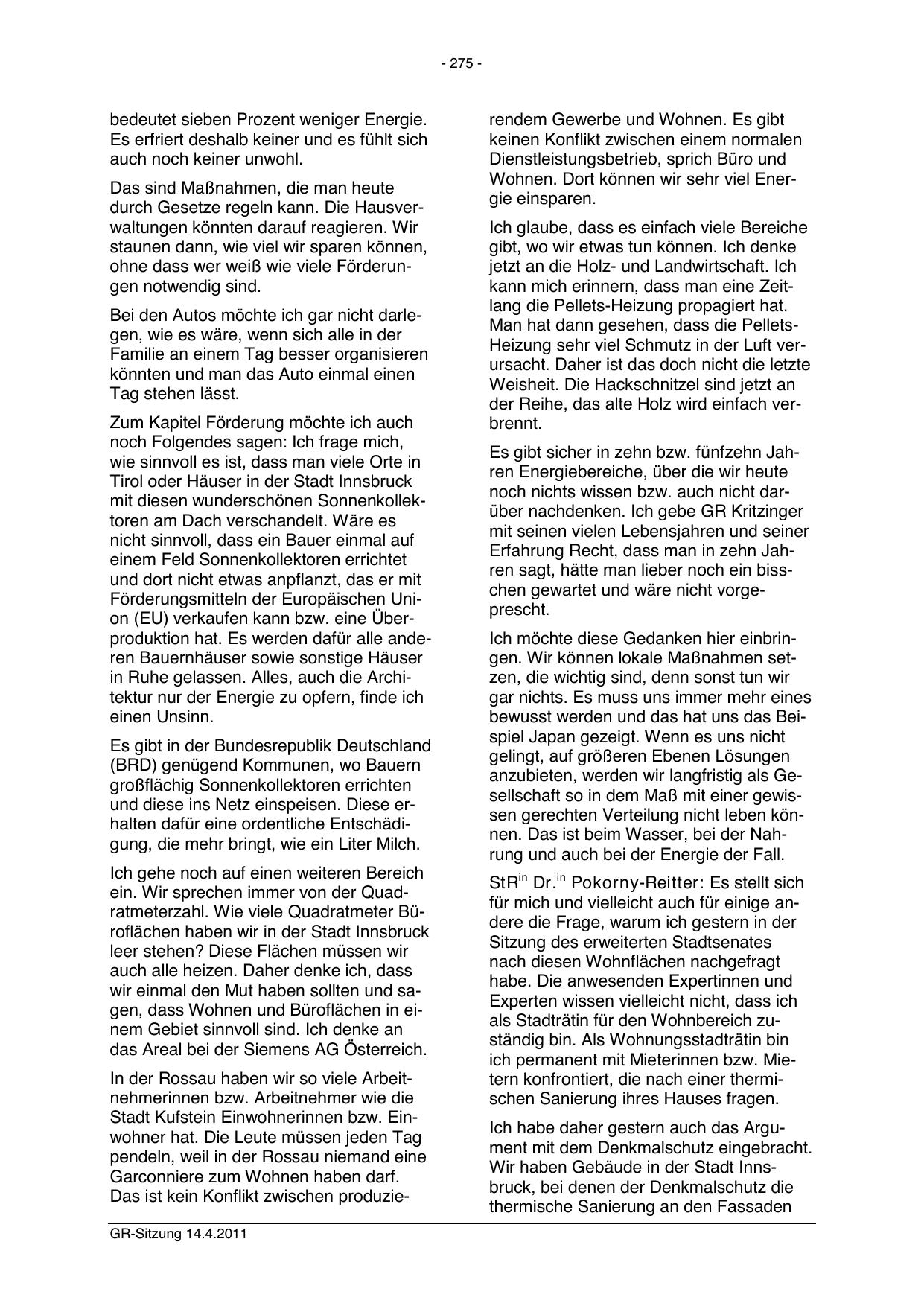 StRin Dr.in Pokorny-Reitter: Es stellt sich