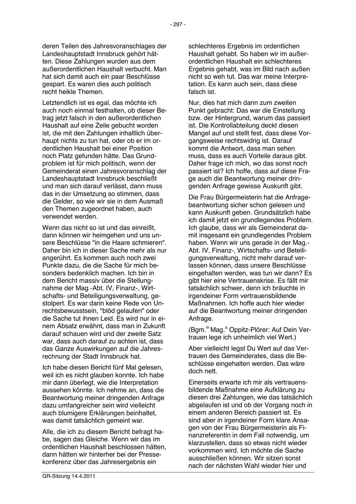 das Ganze Auswirkungen auf die Jahresrechnung der Stadt Innsbruck hat.