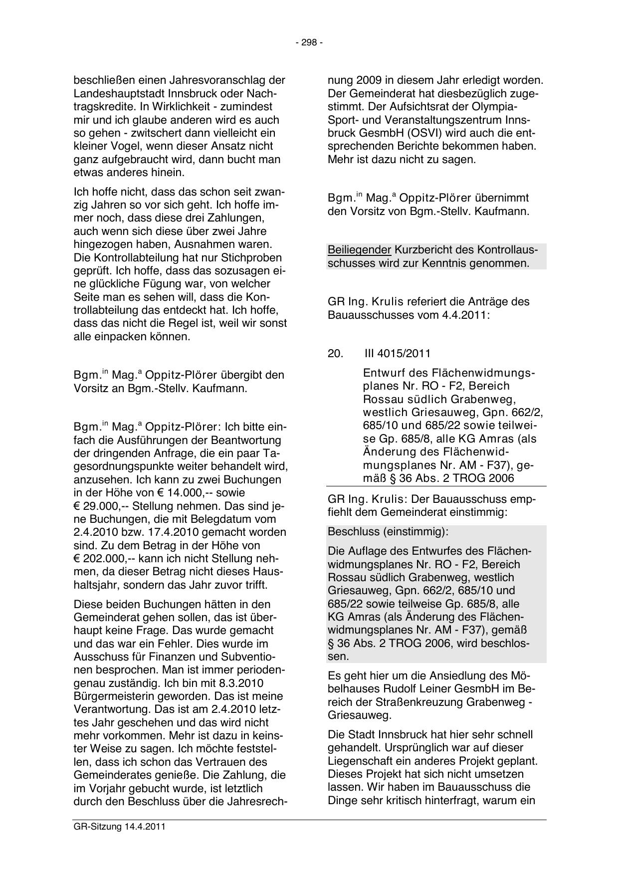 durch den Beschluss über die JahresrechGR-Sitzung 14.4.2011