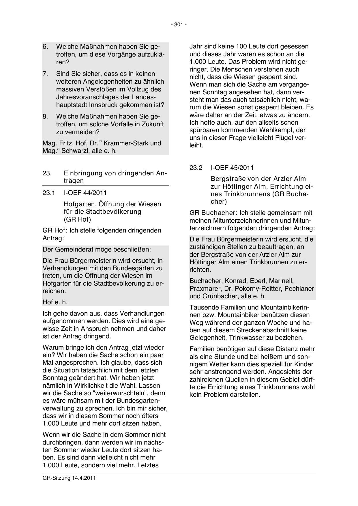 Jahresvoranschlages der Landeshauptstadt Innsbruck gekommen ist?
