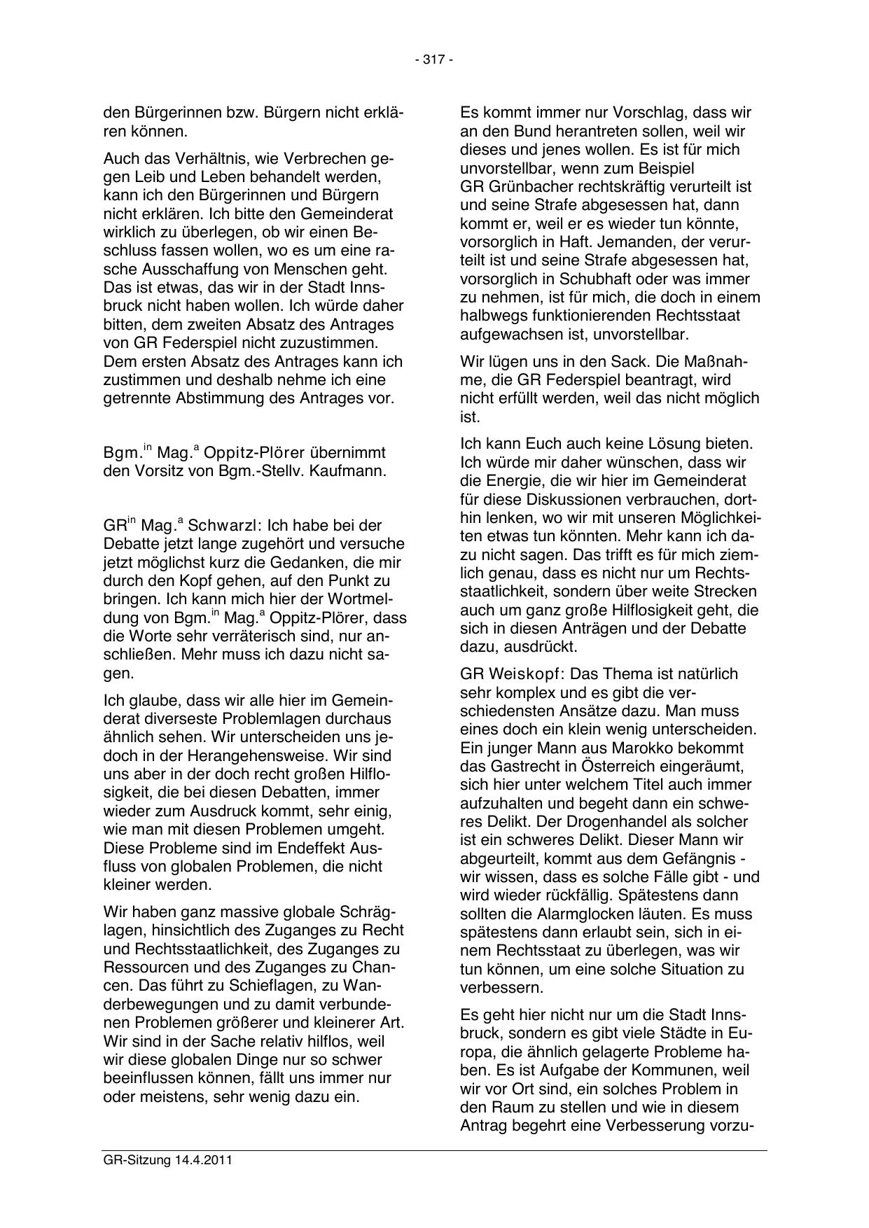 bringen. Ich kann mich hier der Wortmeldung von Bgm.in Mag.a Oppitz-Plörer, dass