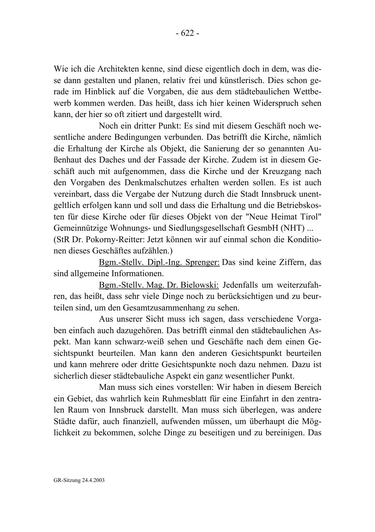 Bgm.-Stellv. Mag. Dr. Bielowski: Jedenfalls um weiterzufahren, das heißt, dass sehr viele Dinge noch zu berücksichtigen und zu beurteilen sind, um den Gesamtzusammenhang zu sehen.
